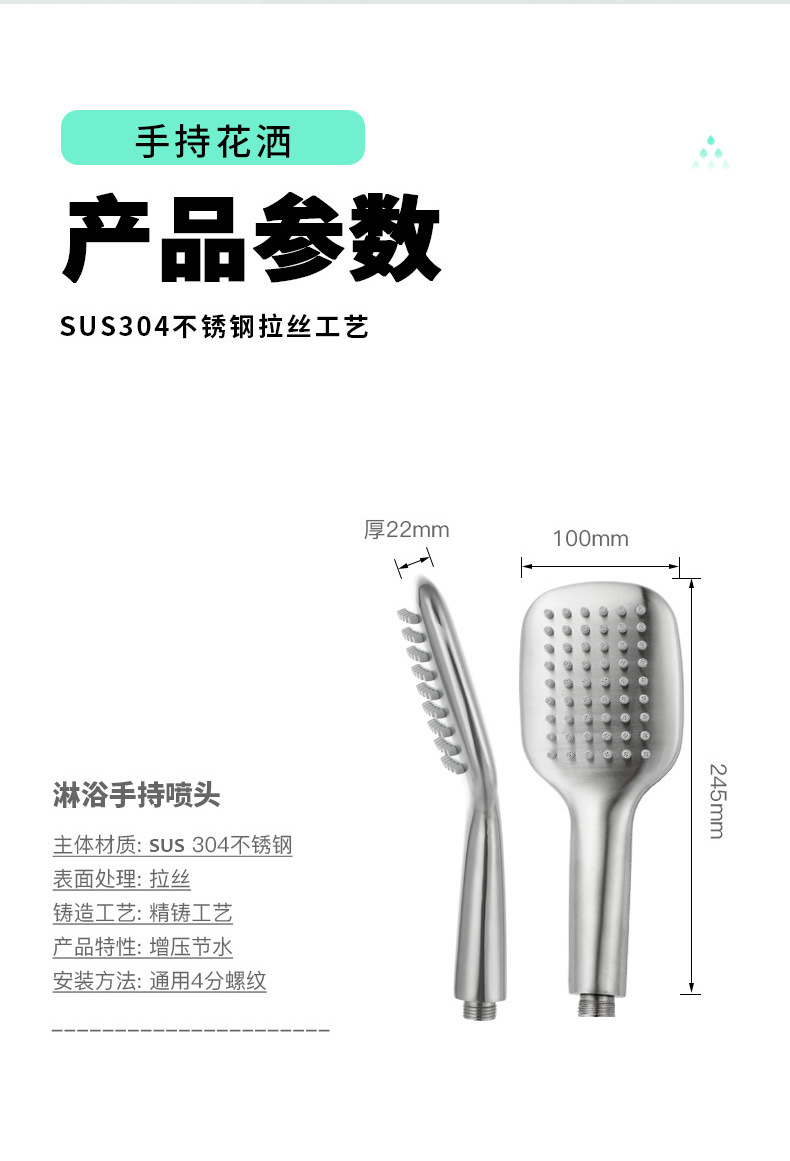 국경 간 304 스테인레스 스틸 건 회색 가압 샤워 노즐 욕실 샤워 헤드 홈 욕조 핸드 헬드스토어 가기