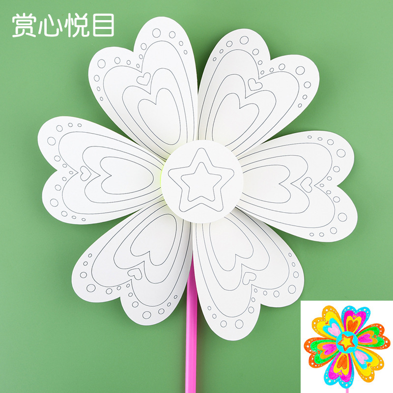 빈 풍차 유치원 수제 소재 패키지 창조적 인 어린이 DIY 그림 낙서 색칠 교육 장난감스토어 가기