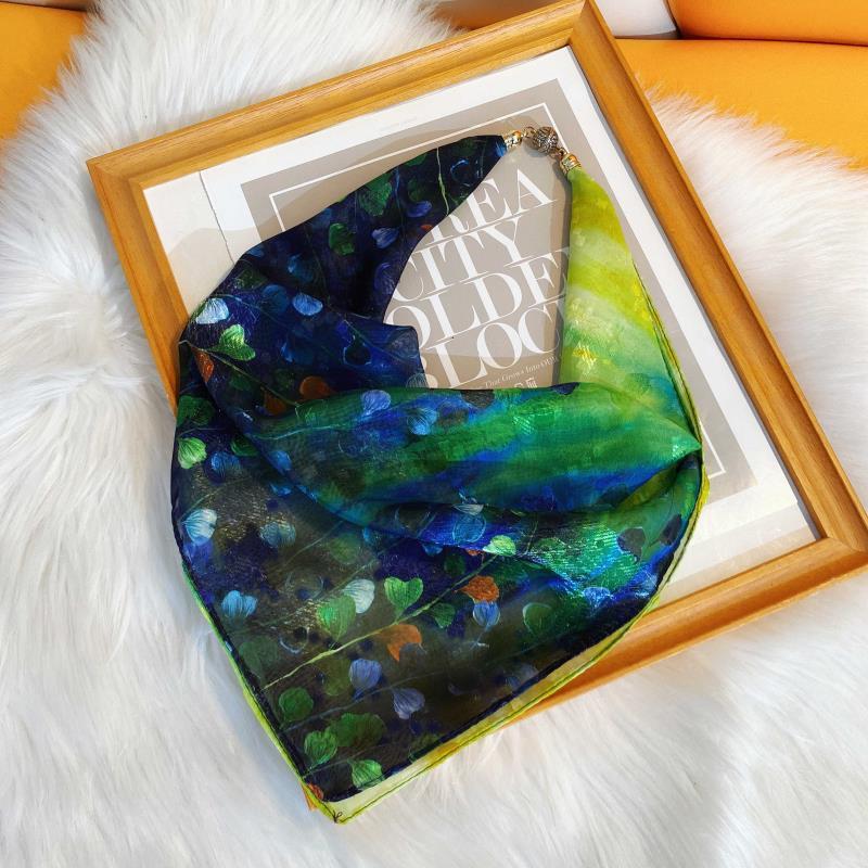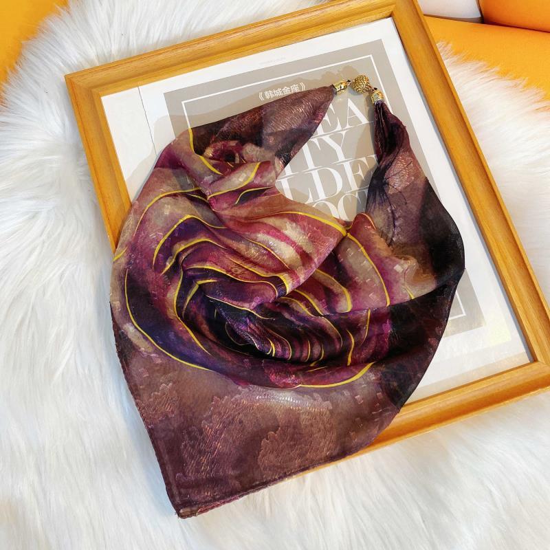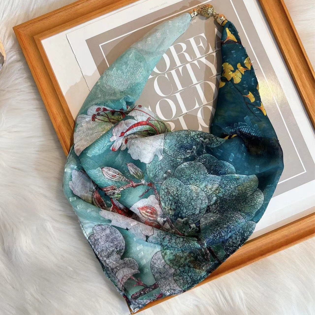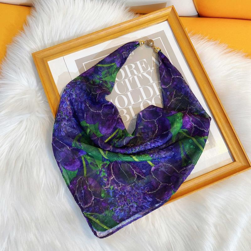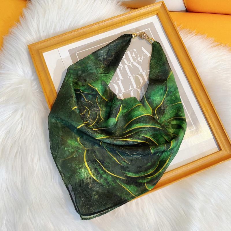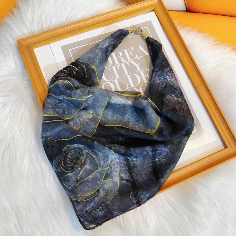 새로운 립 새틴 마그네틱 버클 실크 스카프 우아한 컷 꽃 마그네틱 버클 작은 실크 스카프 봄과 가을 다목적 실크 스카프 패션스토어 가기