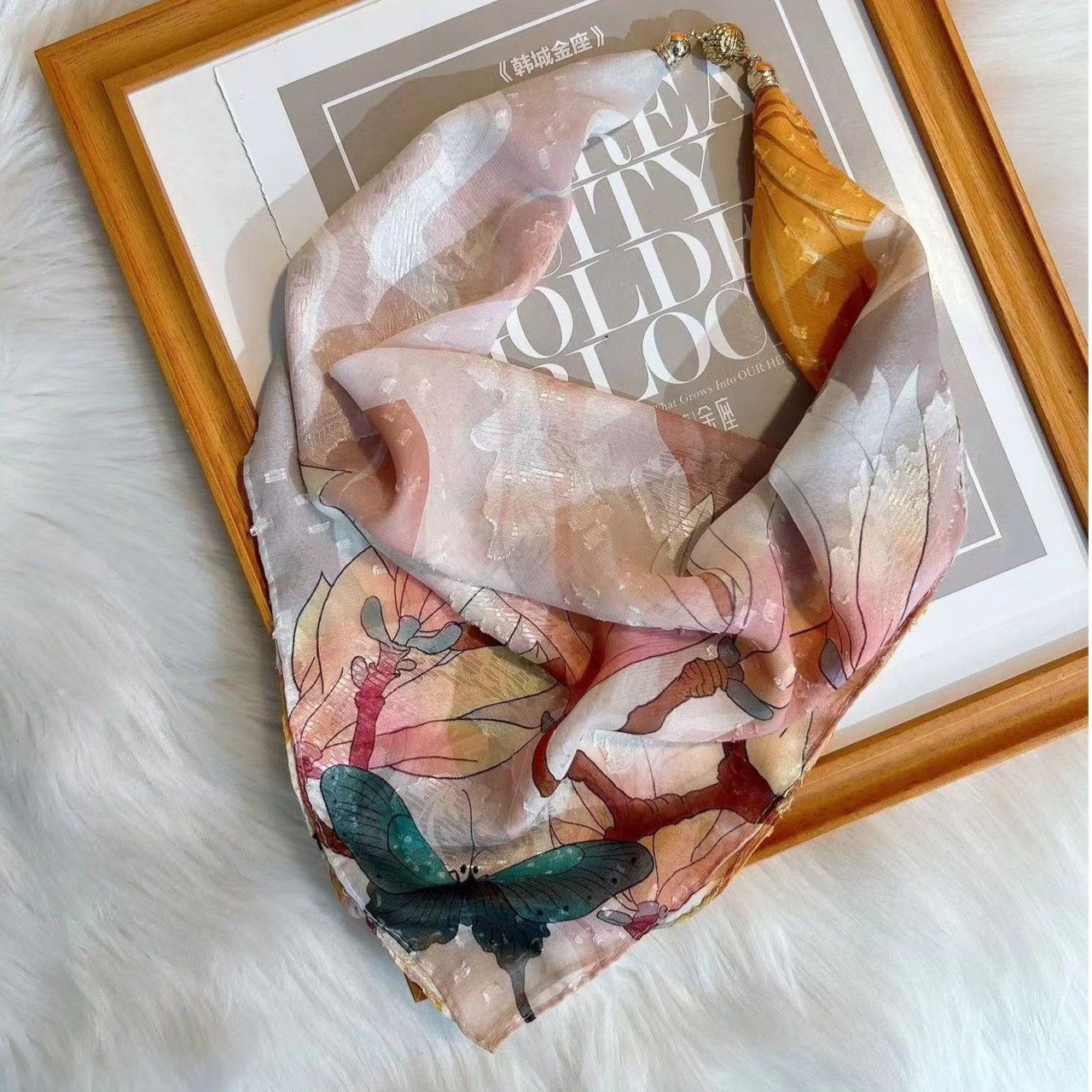 새로운 립 새틴 마그네틱 버클 실크 스카프 우아한 컷 꽃 마그네틱 버클 작은 실크 스카프 봄과 가을 다목적 실크 스카프 패션