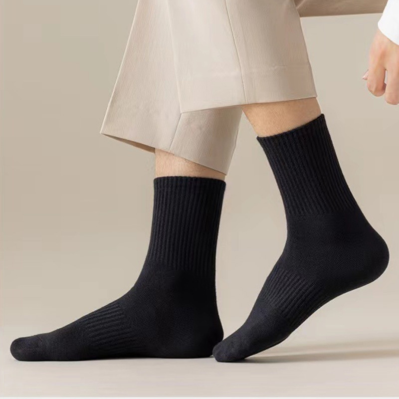 남성용 양말, 허리까지 오는 중목 양말, 스포츠용 긴 양말, 땀 흡수 및 보풀 방지 양말, 봄과 가을용 얇은 미끄럼 방지 흑백 회색 남성 양말스토어 가기
