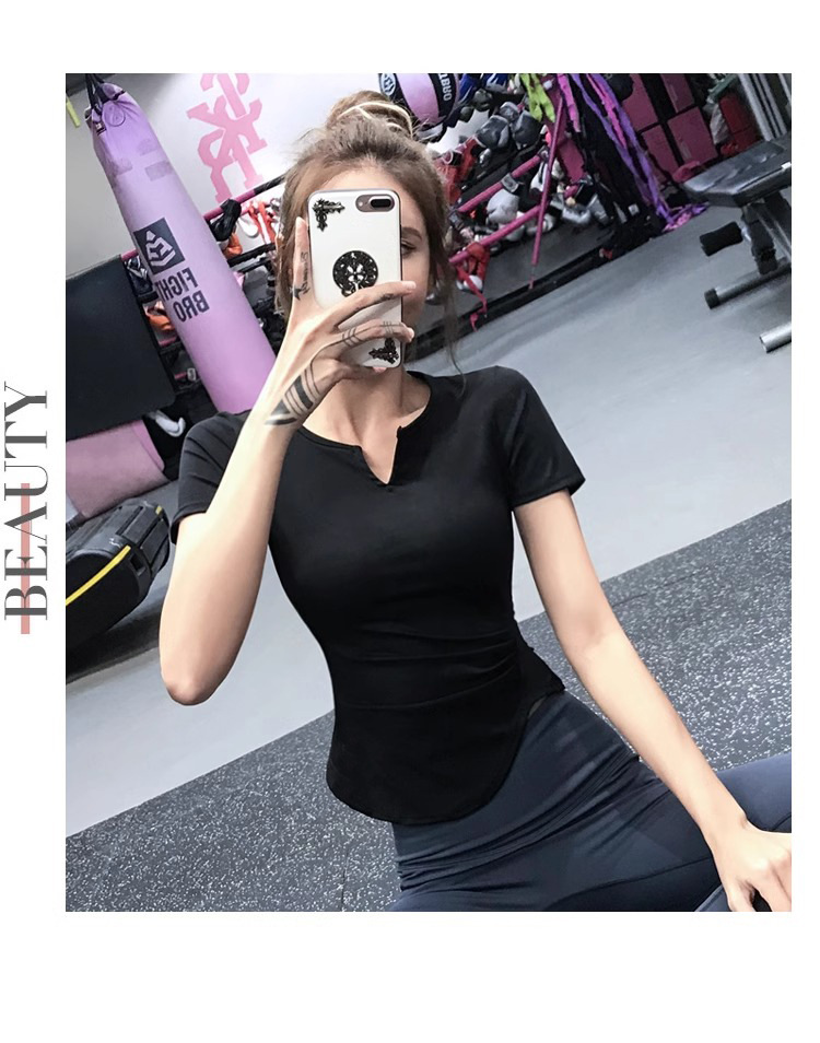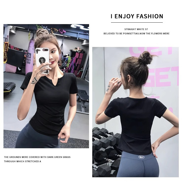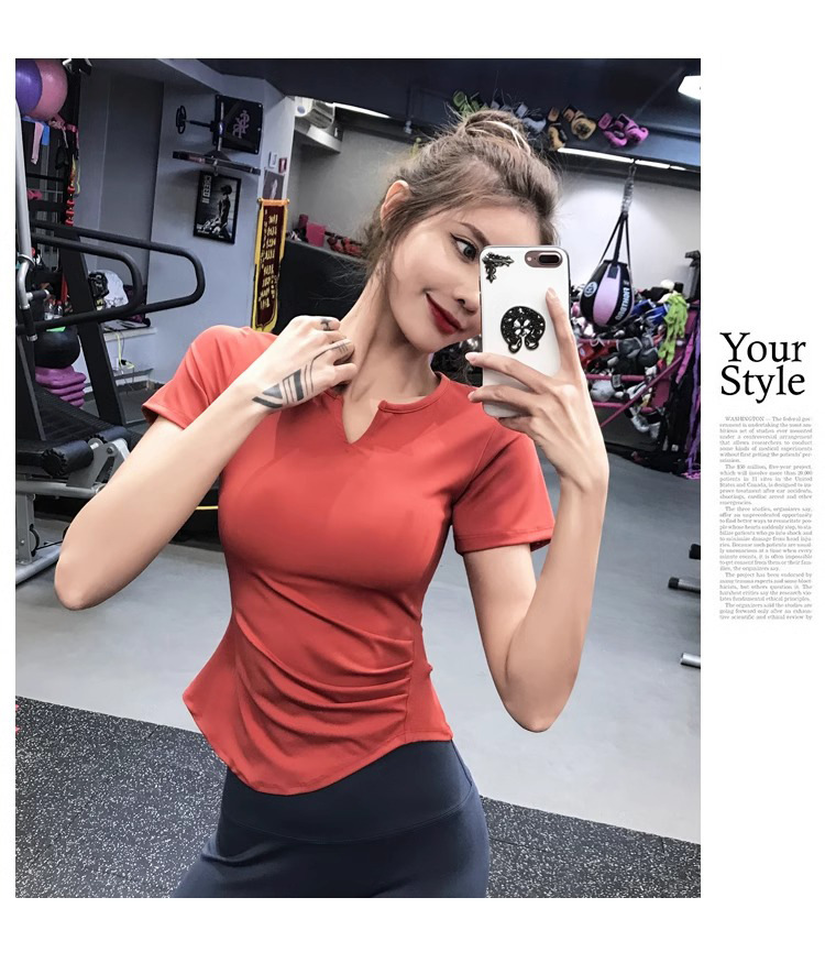 봄과 여름 V-넥 티셔츠 여성 슬리밍 요가 옷 개성 타이트 긴팔 훈련 티셔츠 통기성 스트레치 스포츠 탑스토어 가기