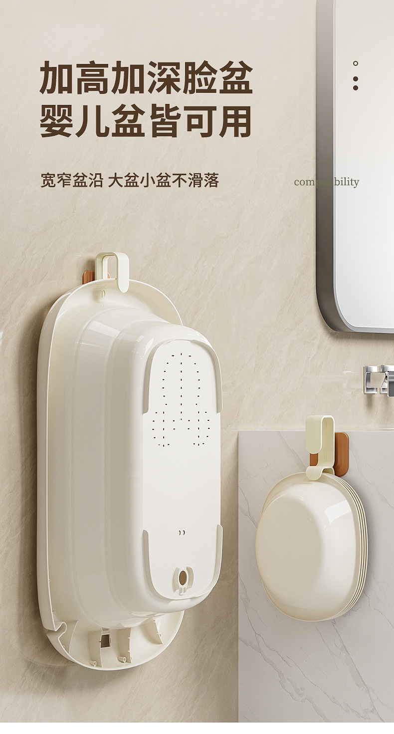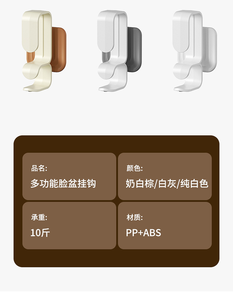 产品名称:脸盆收纳架挂钩颜色:奶油色/白色/灰色