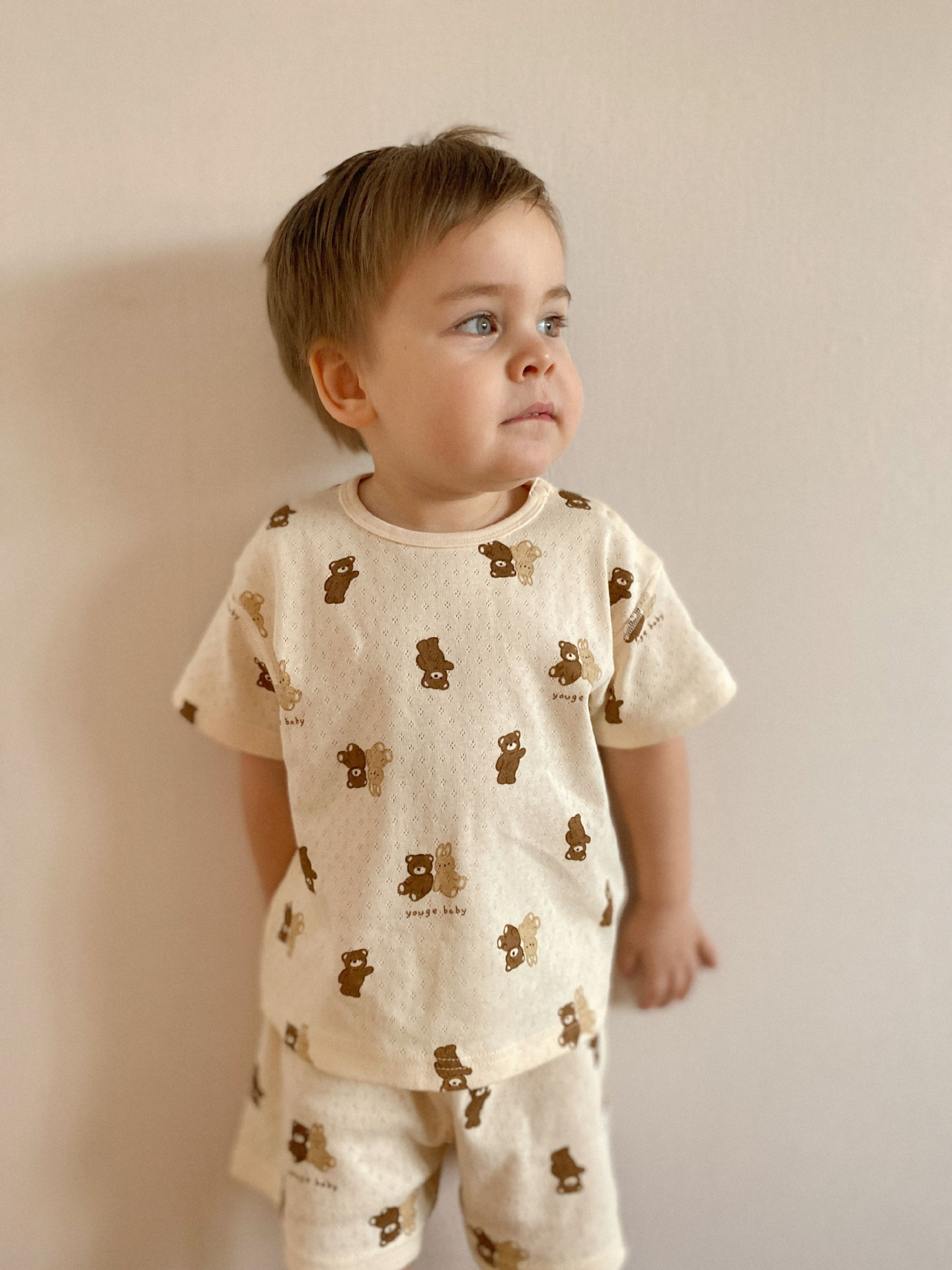 小熊印花透气儿童家居服短袖套装