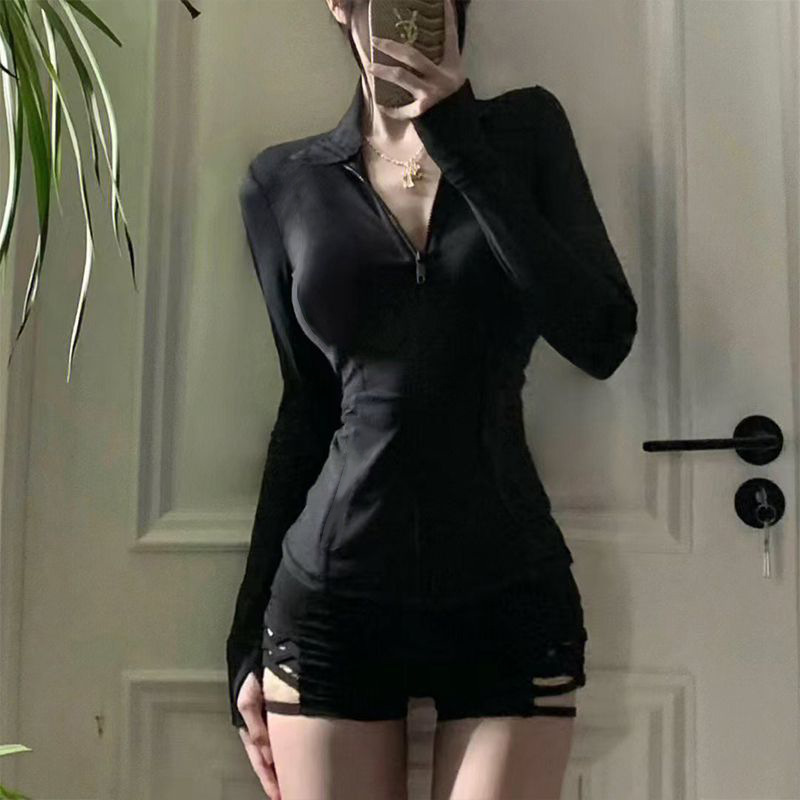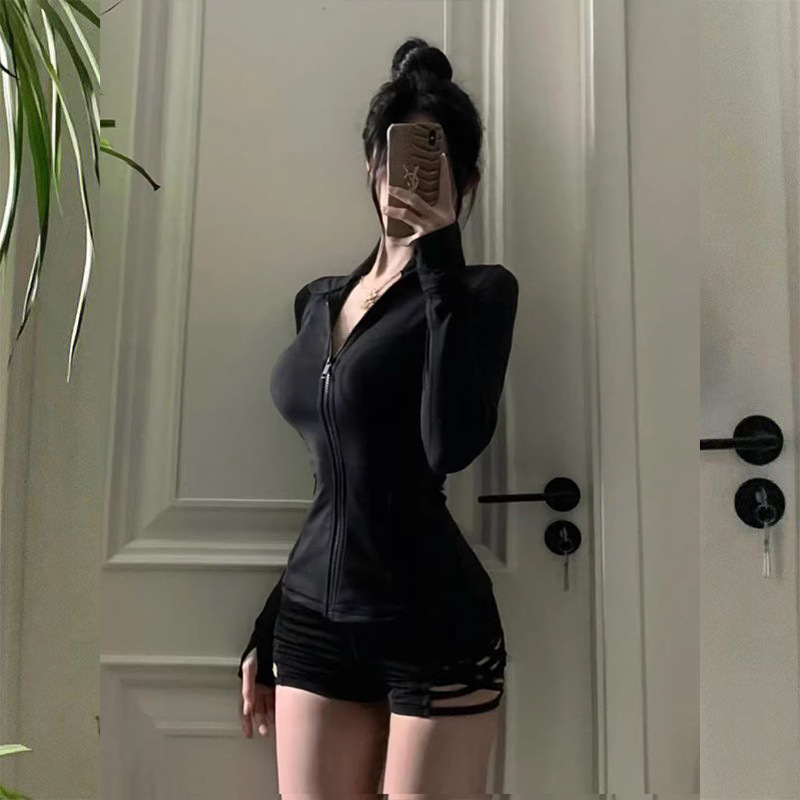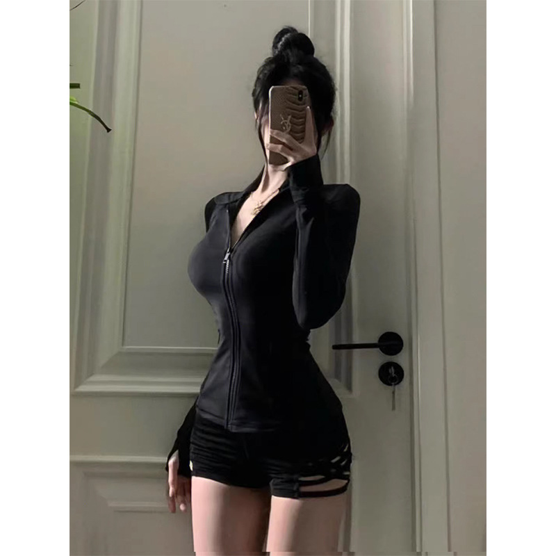 Zhao Lusi 같은 스타일의 지퍼 태양 보호 의류 후드 요가 여성 봄과 가을 타이트한 허리 슬리밍 스포츠 코트 유행 탑