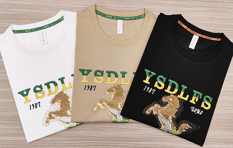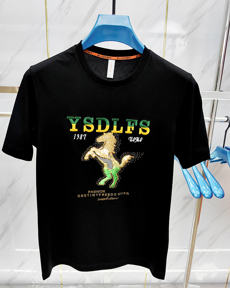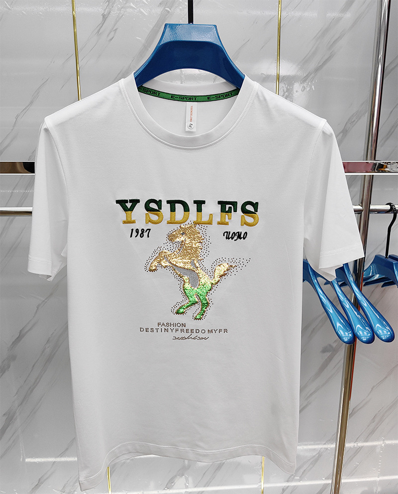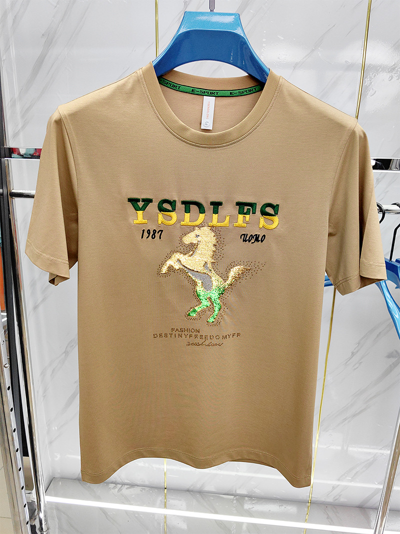 중공업 트렌디 한 남성 짧은 소매 라운드 넥 셔츠 머서라이즈면 남성 하프 슬리브 편안한 통기성 여름 새 티셔츠스토어 가기