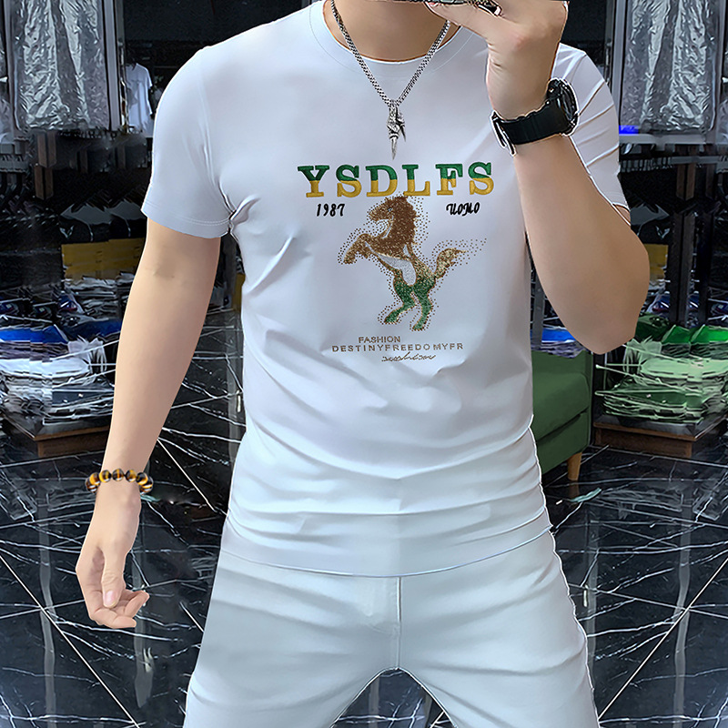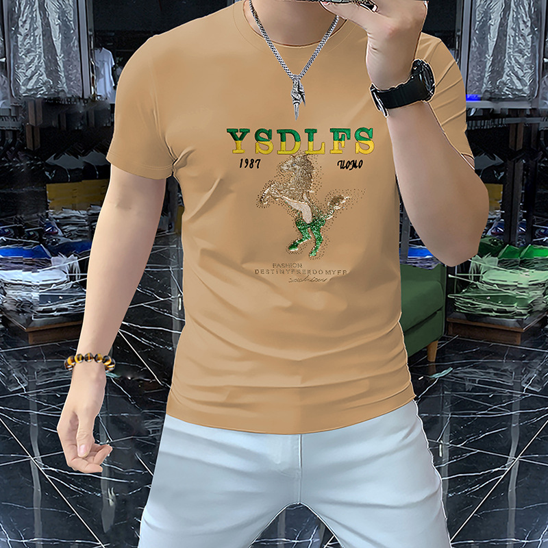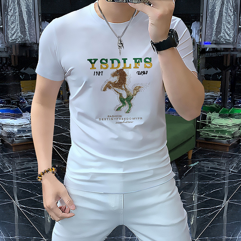 중공업 트렌디 한 남성 짧은 소매 라운드 넥 셔츠 머서라이즈면 남성 하프 슬리브 편안한 통기성 여름 새 티셔츠