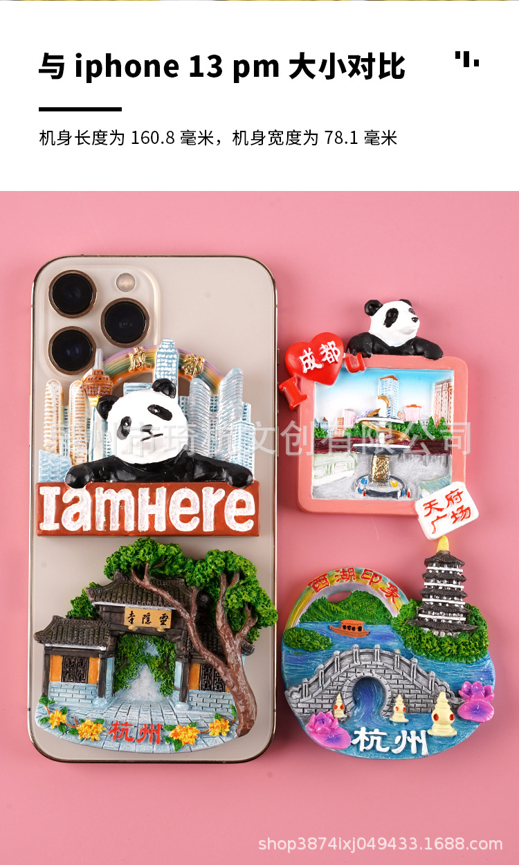 새로운 건물 도시 풍경 냉장고 스티커 항저우 링긴 사원 서쪽 호수 청두 팬더 장식 관광 명소 기념스토어 가기