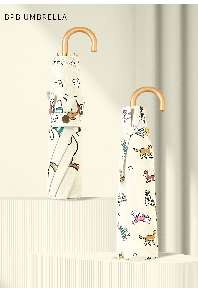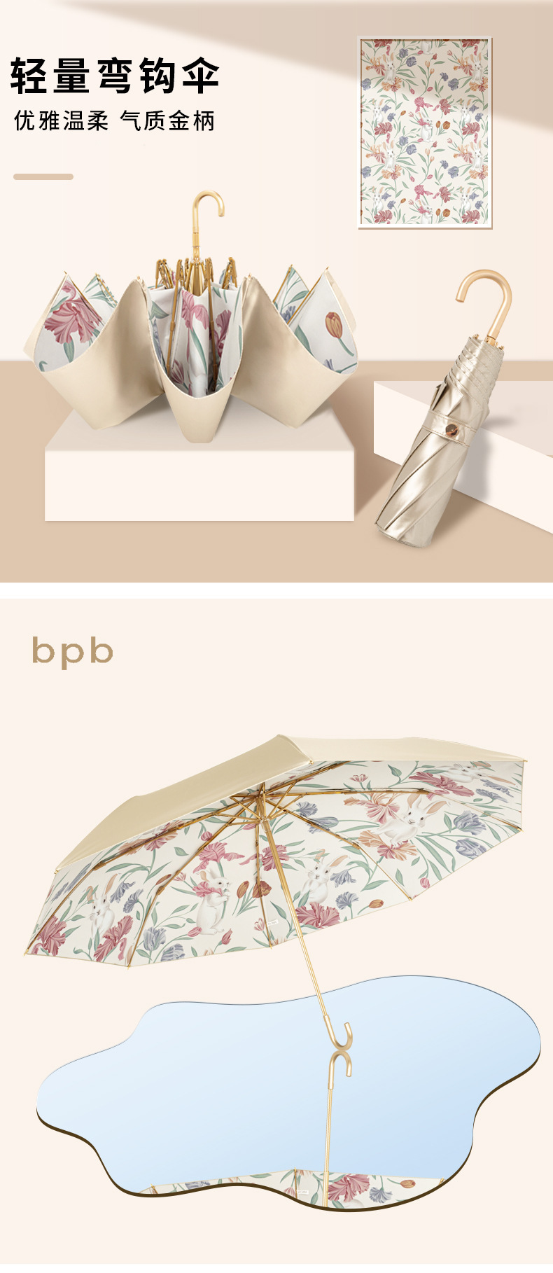 Zhibruss 골드 후크 우산 접이식 우산 고급 태양 우산 자외선 방지 우산 이중 사용 여성용 휴대용 태양 우산