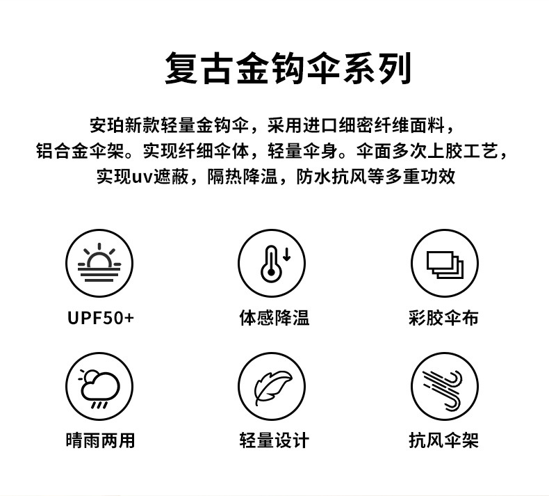 Zhibruss 골드 후크 우산 접이식 우산 고급 태양 우산 자외선 방지 우산 이중 사용 여성용 휴대용 태양 우산스토어 가기