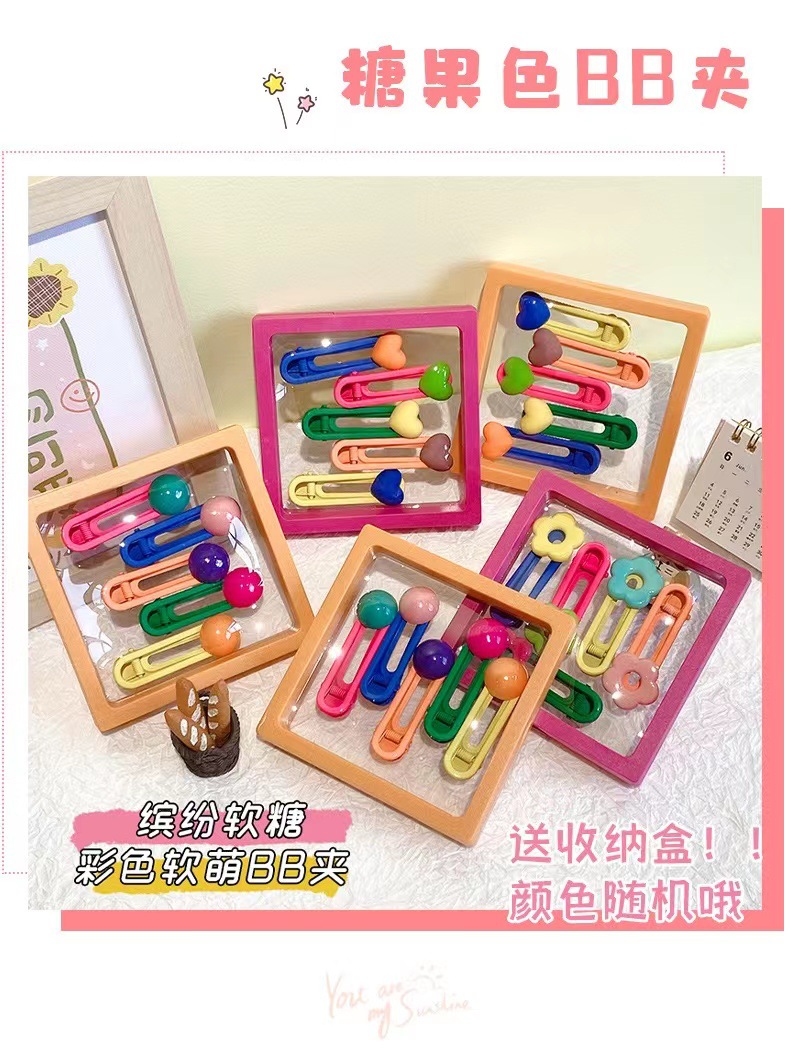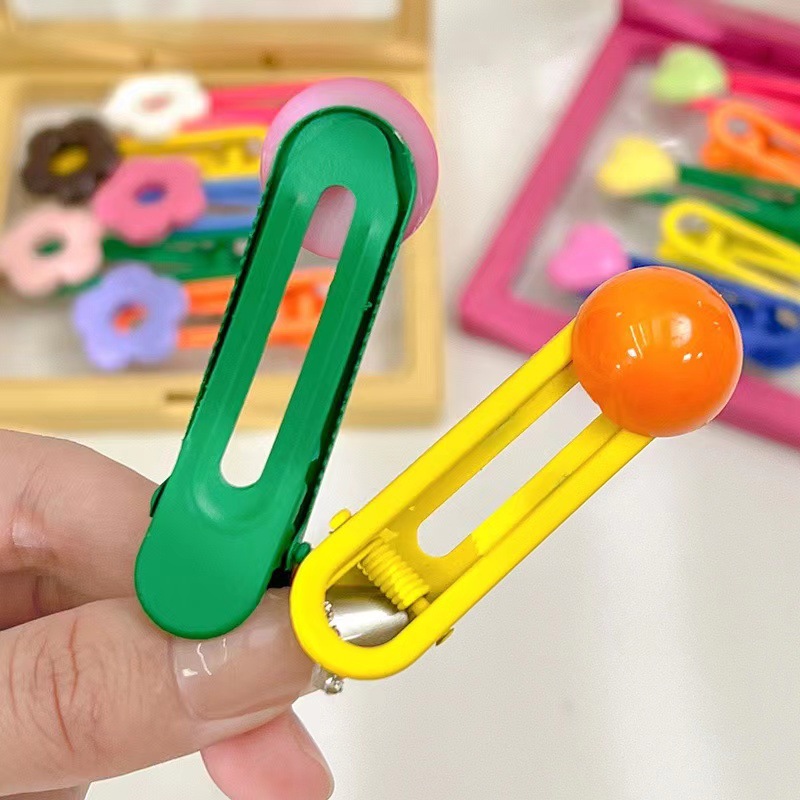 새로운 어린이 만화 젤리 빈 머리핀 소녀 앞머리 깨진 머리핀 머리 장식 귀여운 속이 빈 부모 자식 세트 헤어 액세서리스토어 가기