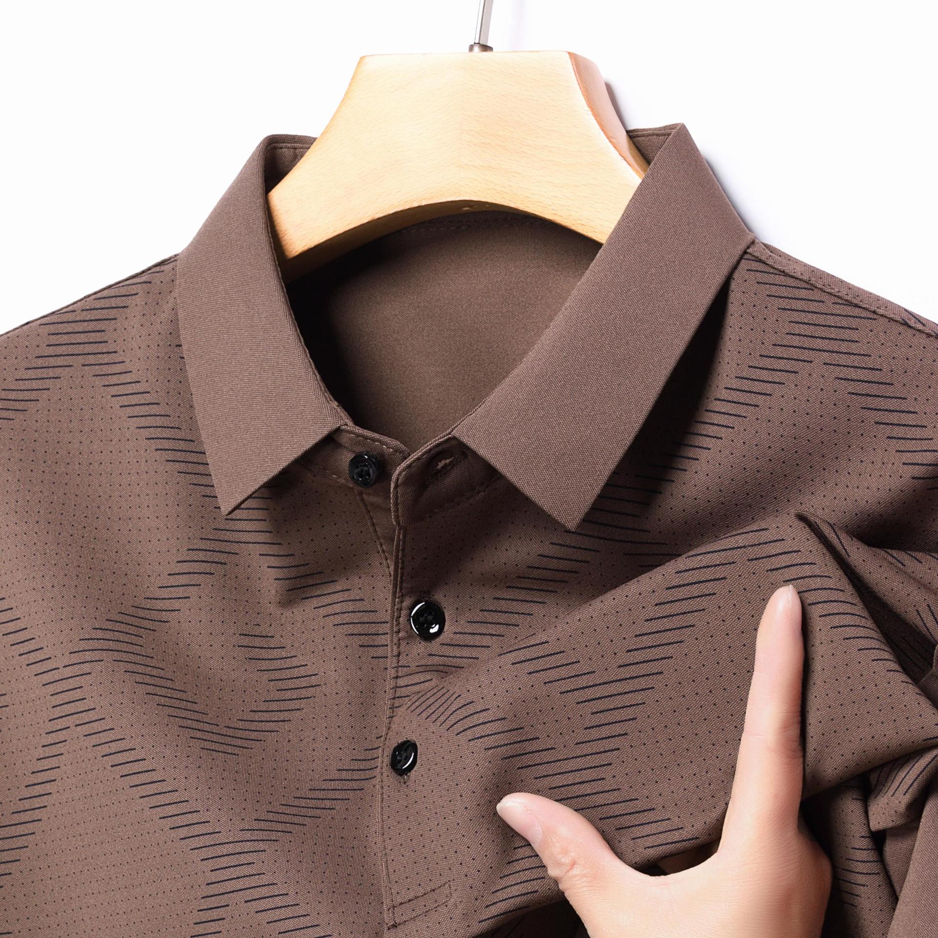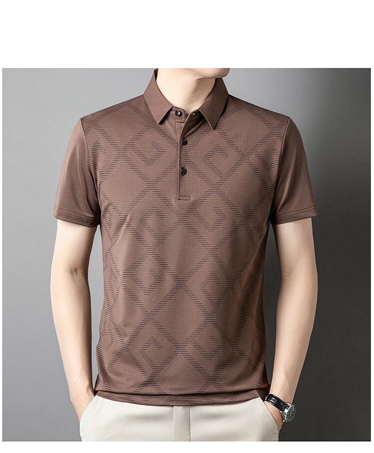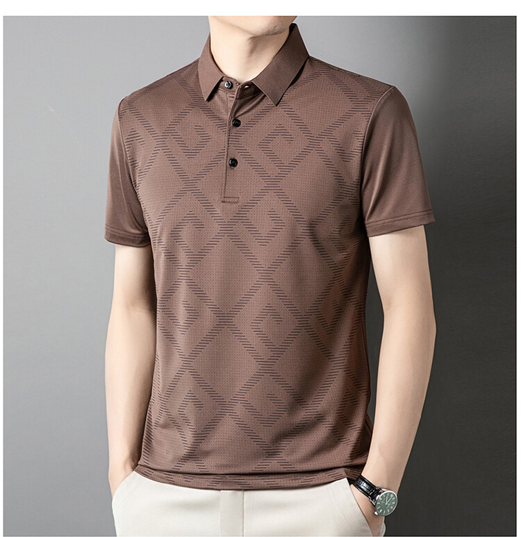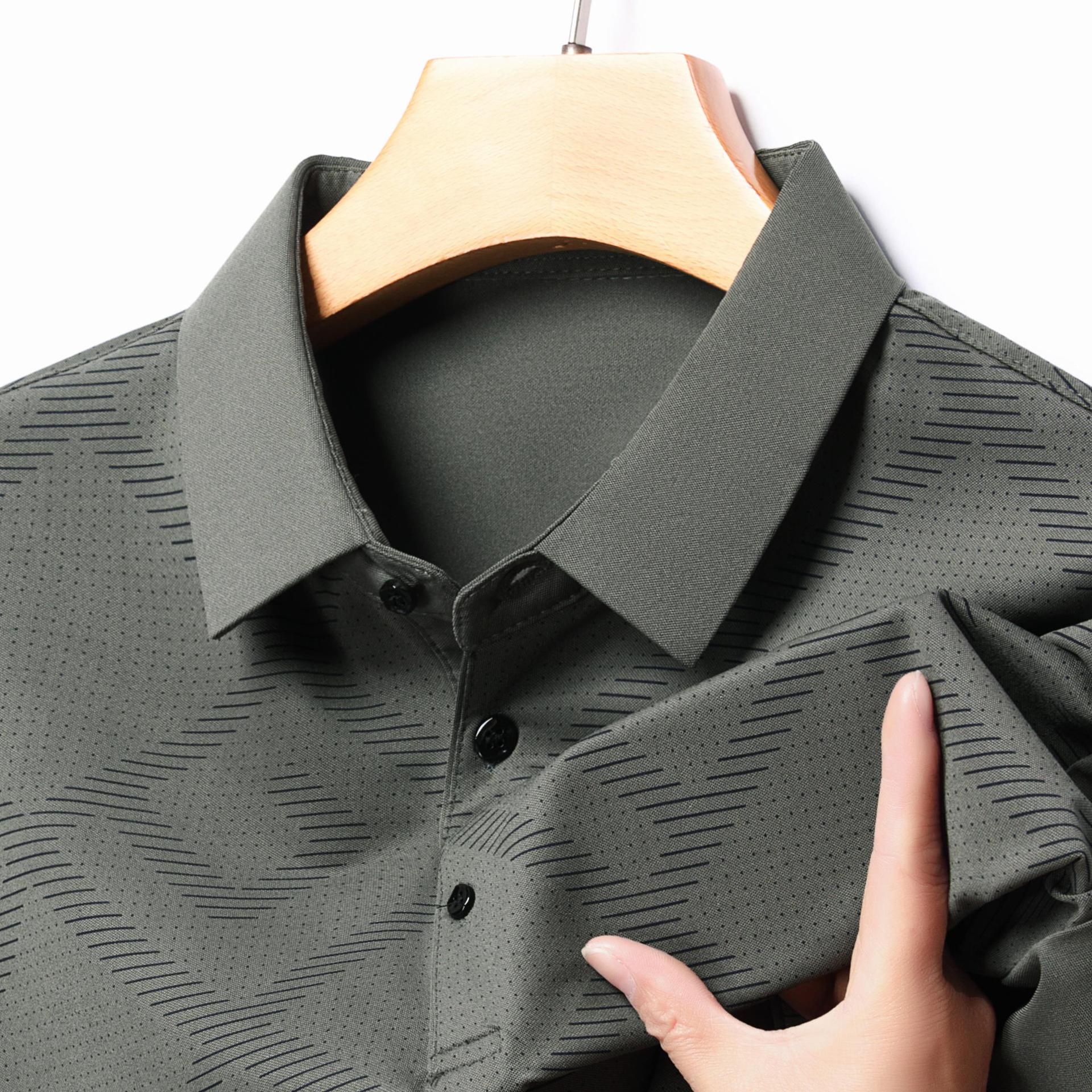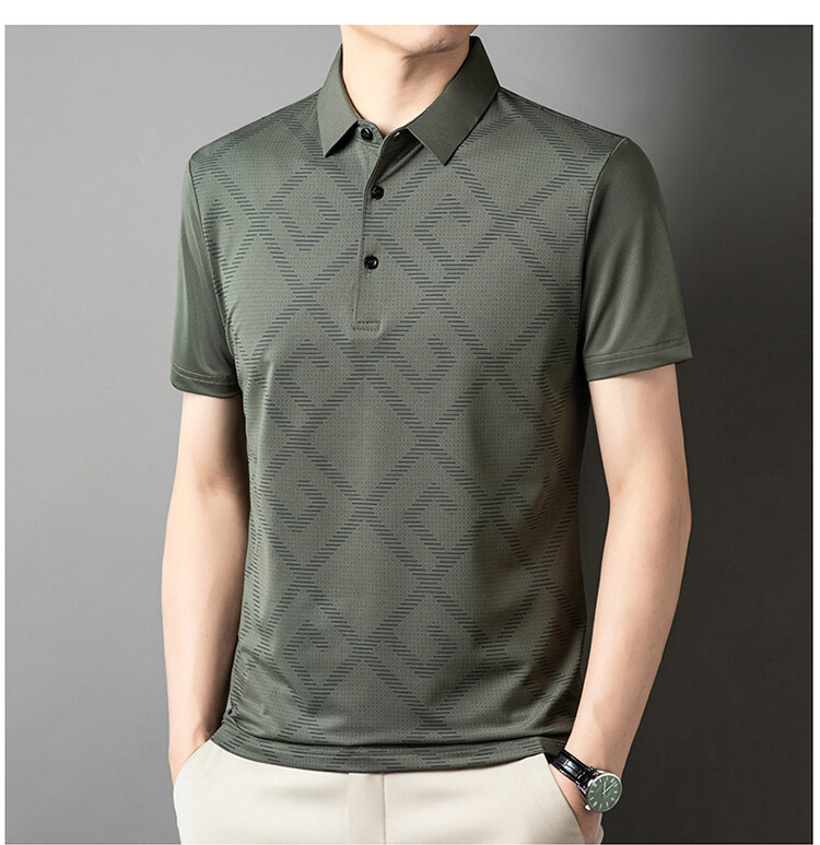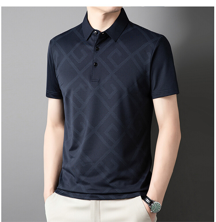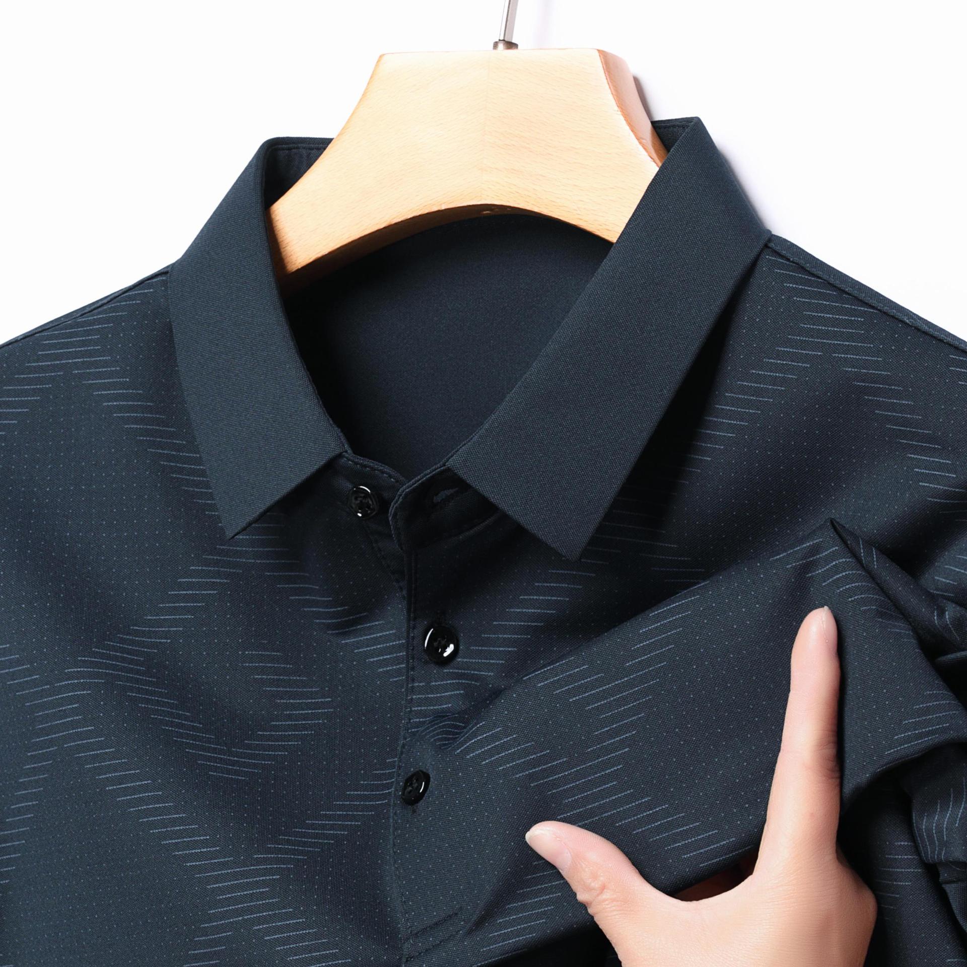 젊고 중년의 뉴 자카드 남성용 반팔 티셔츠 실키 여름 비즈니스 캐주얼 빠른 건조 옷깃 폴로 셔츠 탑