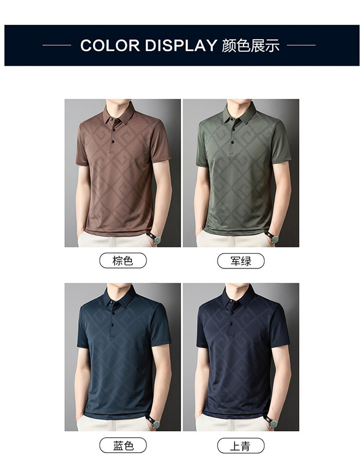 젊고 중년의 뉴 자카드 남성용 반팔 티셔츠 실키 여름 비즈니스 캐주얼 빠른 건조 옷깃 폴로 셔츠 탑스토어 가기