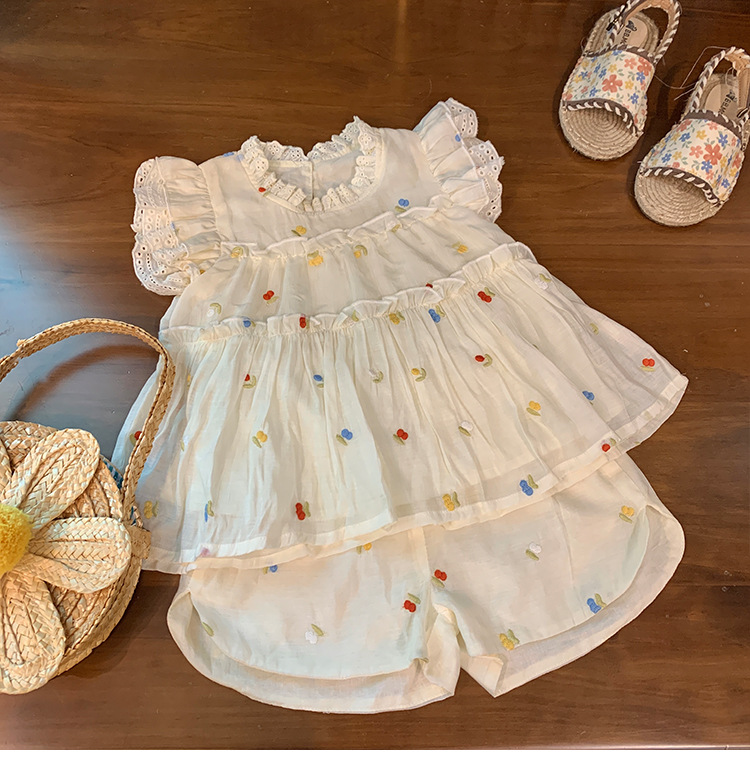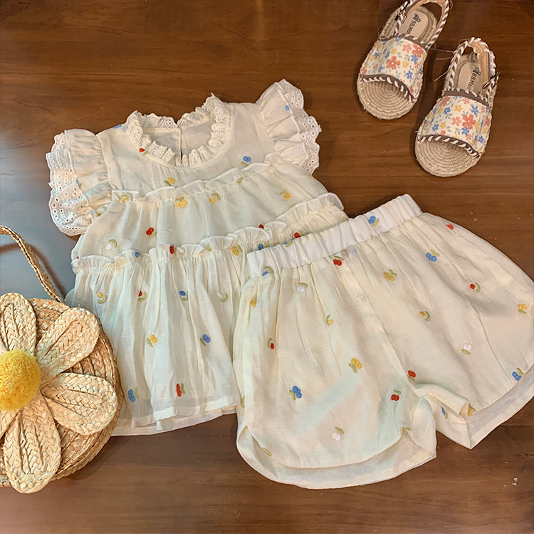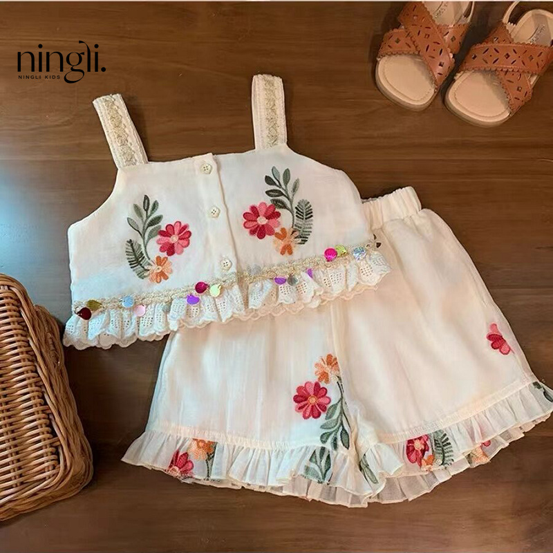 Ningli 여자 꽃 정장 여름 2025 새로운 어린이 한국 스타일 서양식 투피스 세트 아기 소녀 인터넷 연예인 정장