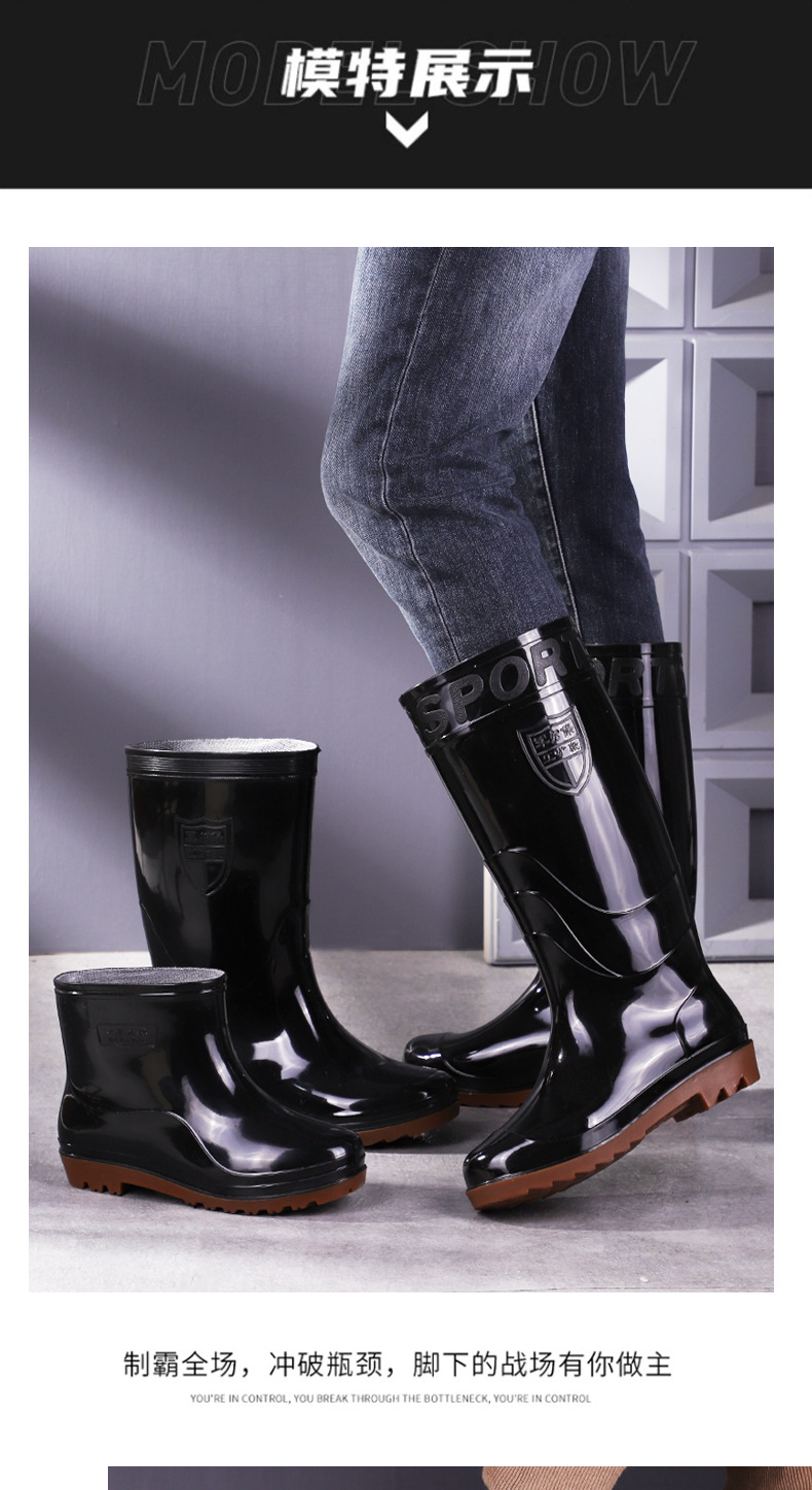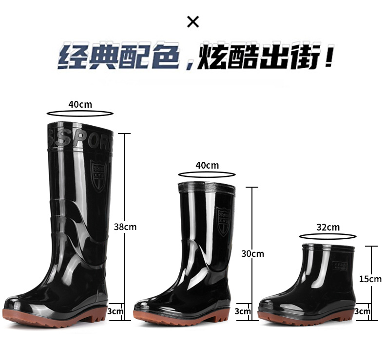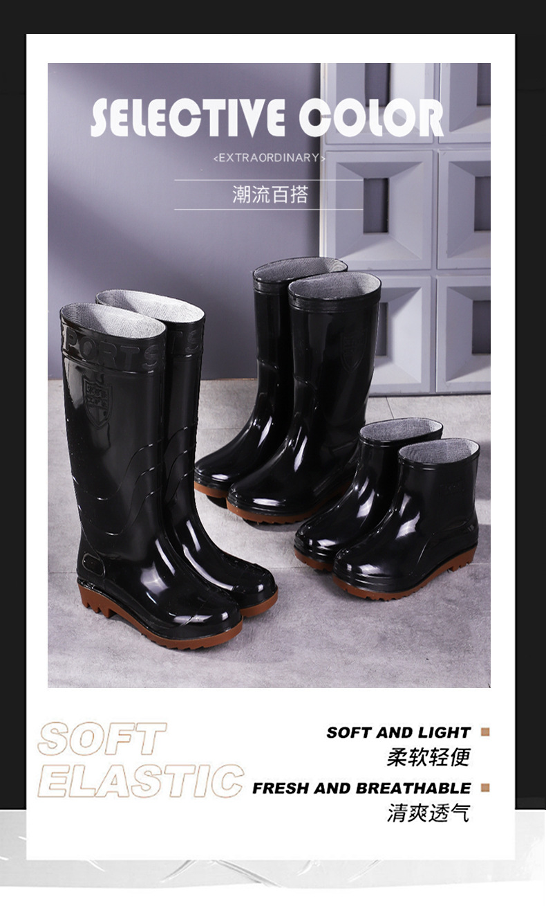 노동 보호 장화 국경 간 도매 높은 중간 송아지 단수 신발 남성 및 여성 힘줄 바닥 내마모성 건설 현장 주방 장화
