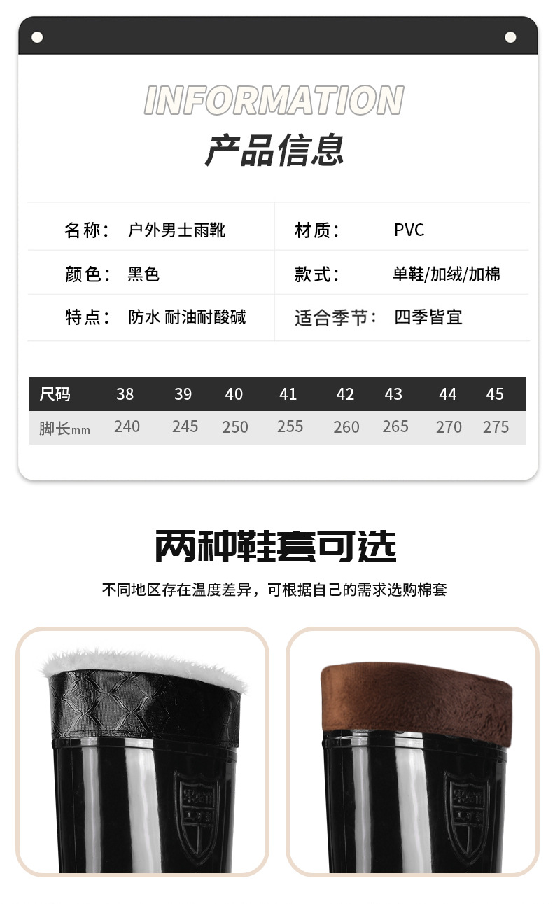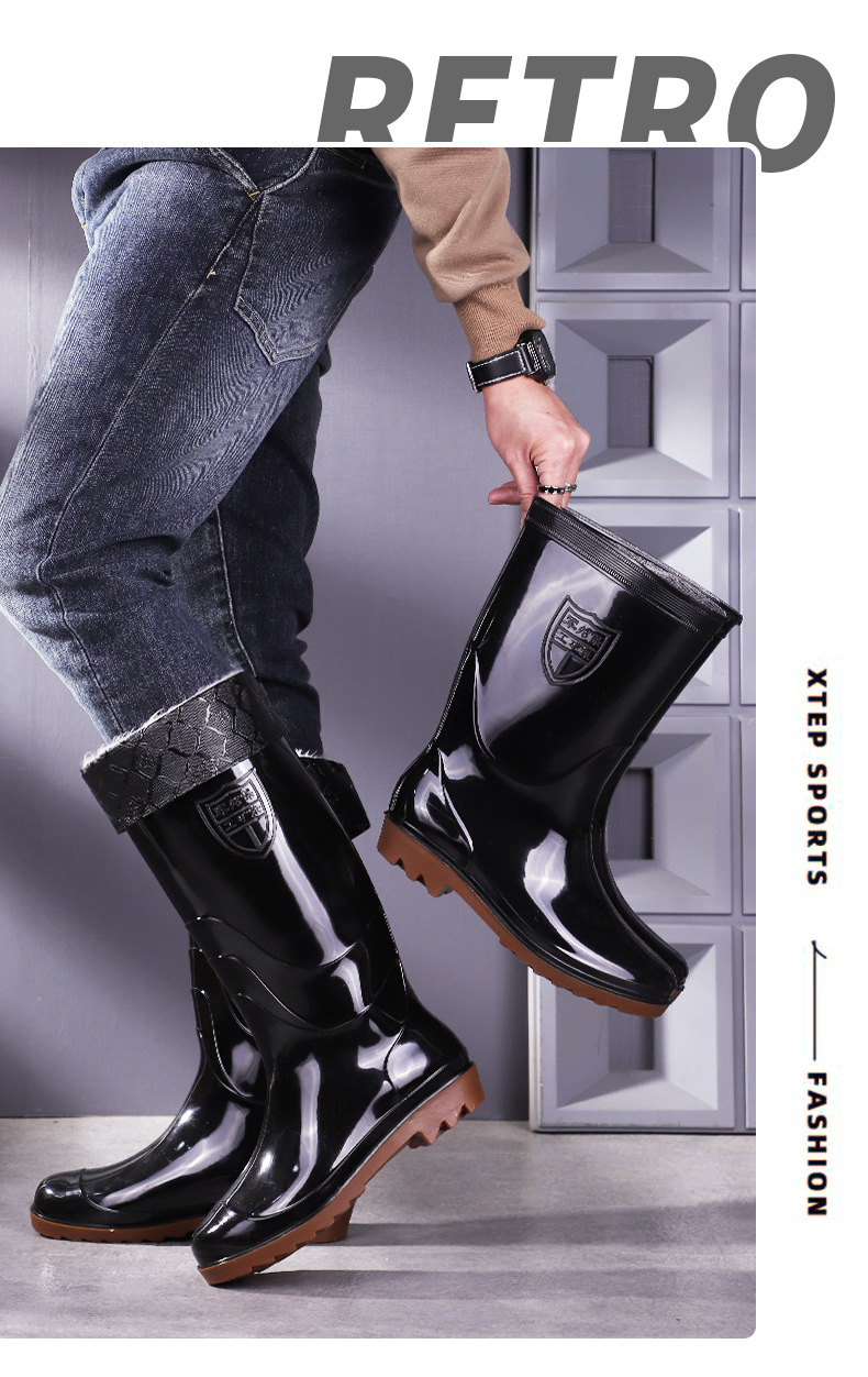 노동 보호 장화 국경 간 도매 높은 중간 송아지 단수 신발 남성 및 여성 힘줄 바닥 내마모성 건설 현장 주방 장화스토어 가기