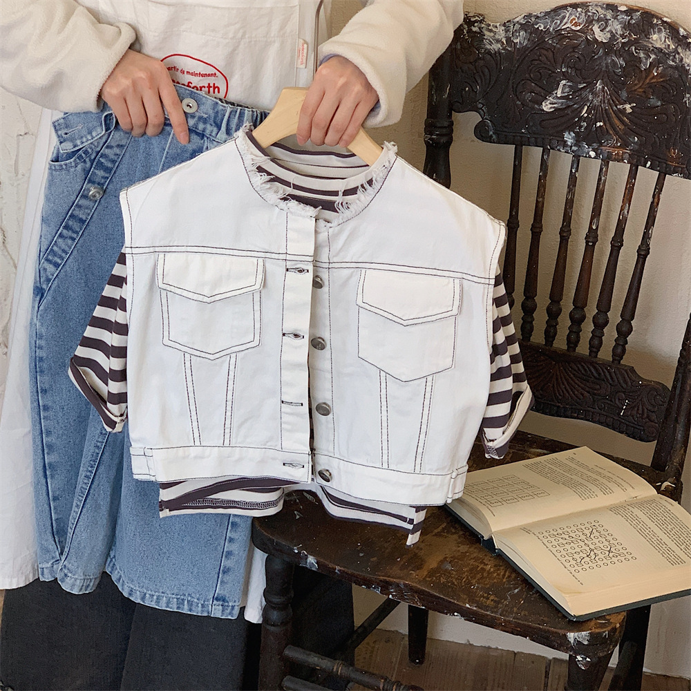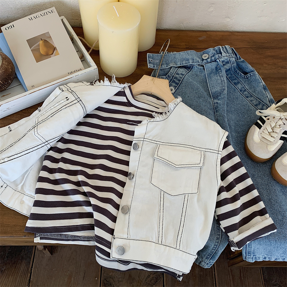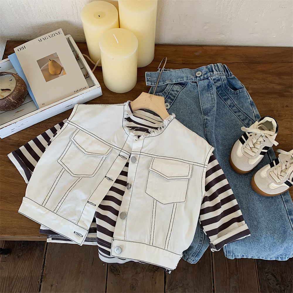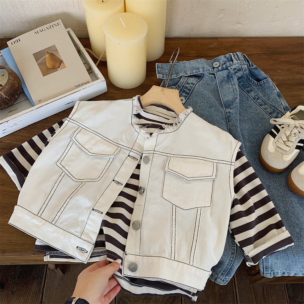 어린이 조끼 내부 투피스 세트 2024 새 소년 봄과 여름 옷 아기 한국식 아동복 아동복스토어 가기