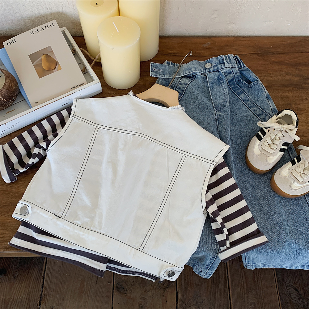 어린이 조끼 내부 투피스 세트 2024 새 소년 봄과 여름 옷 아기 한국식 아동복 아동복