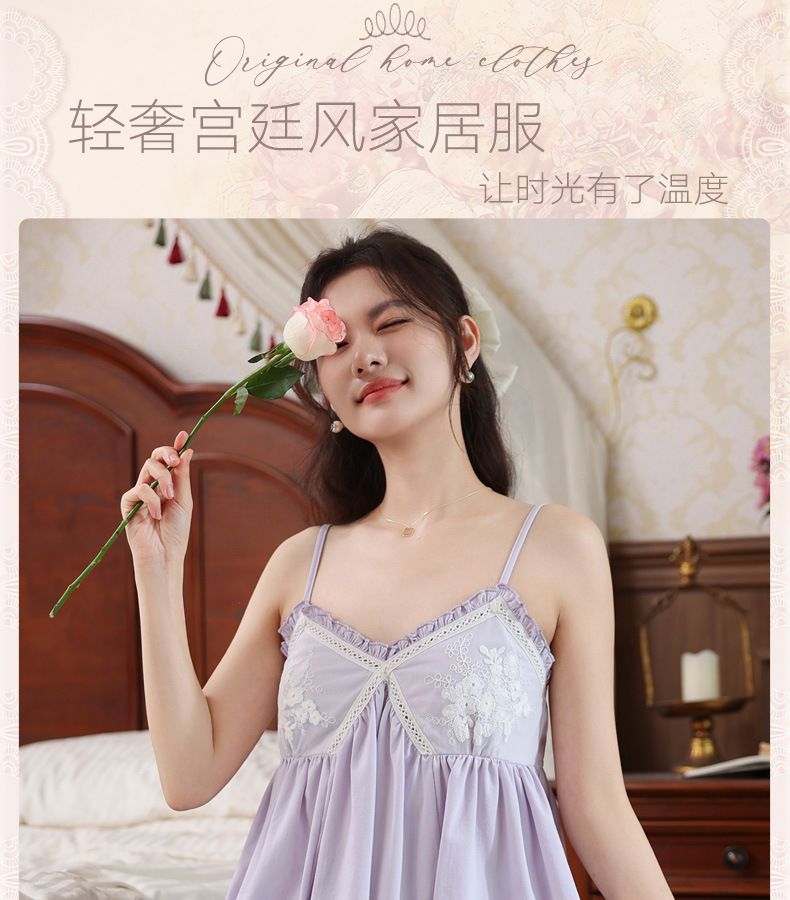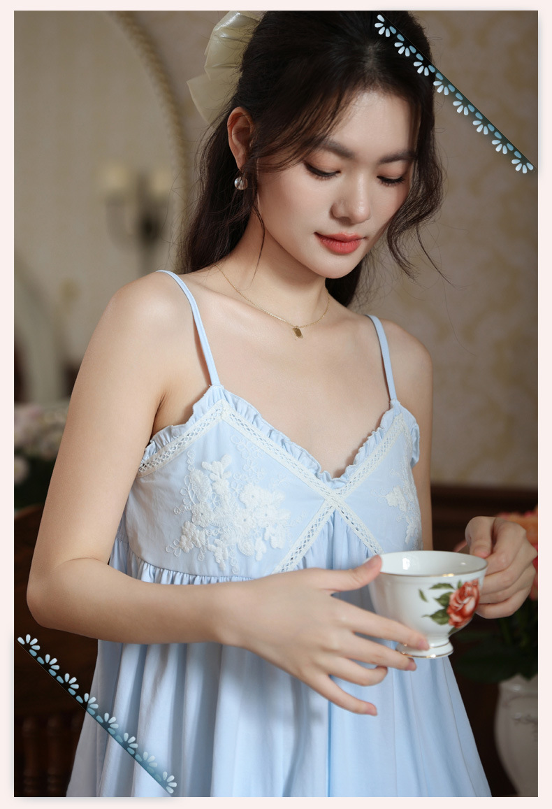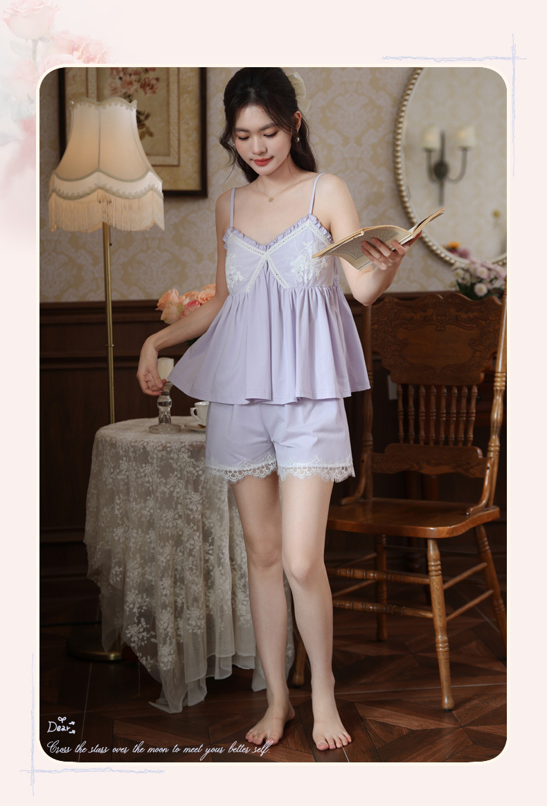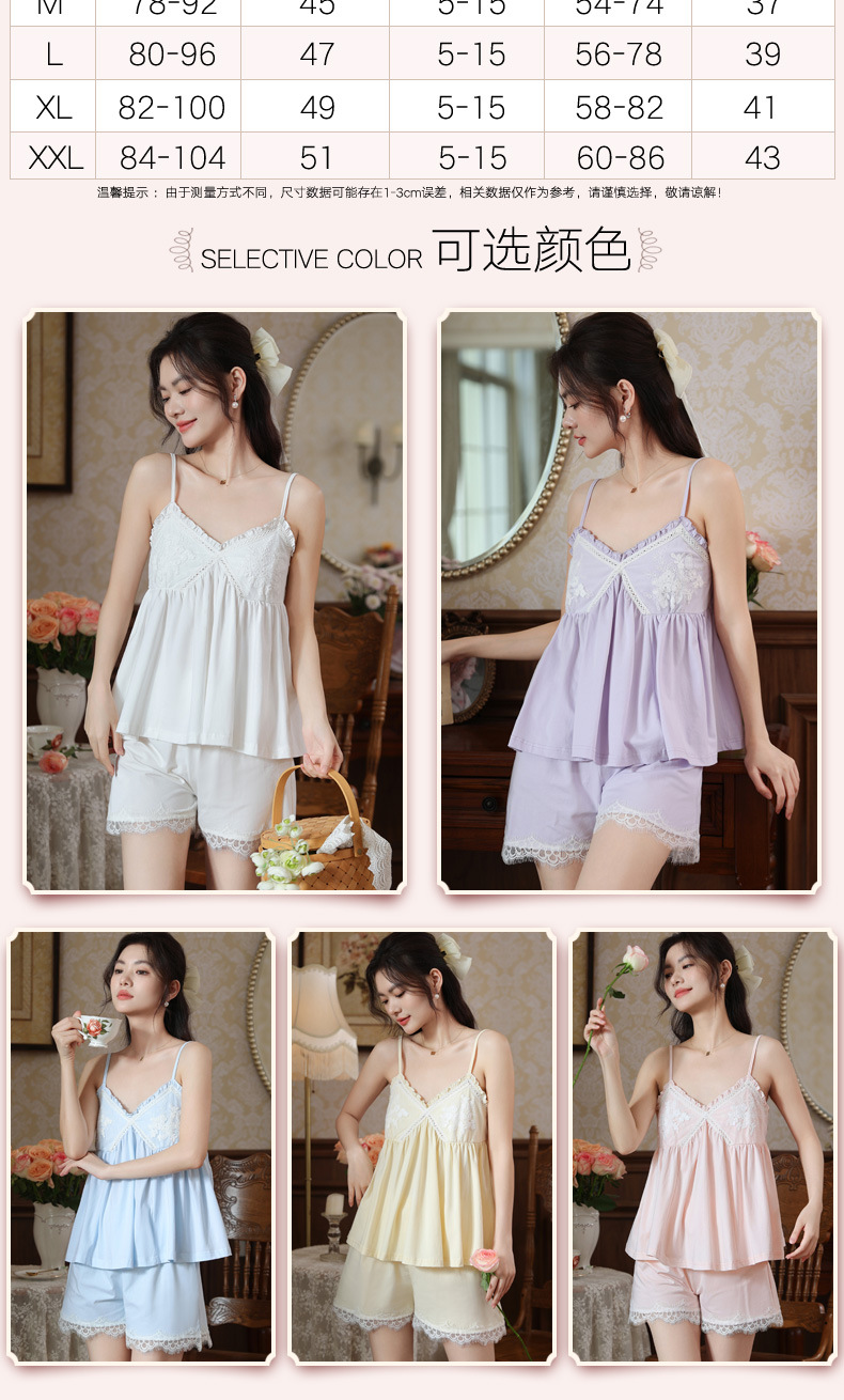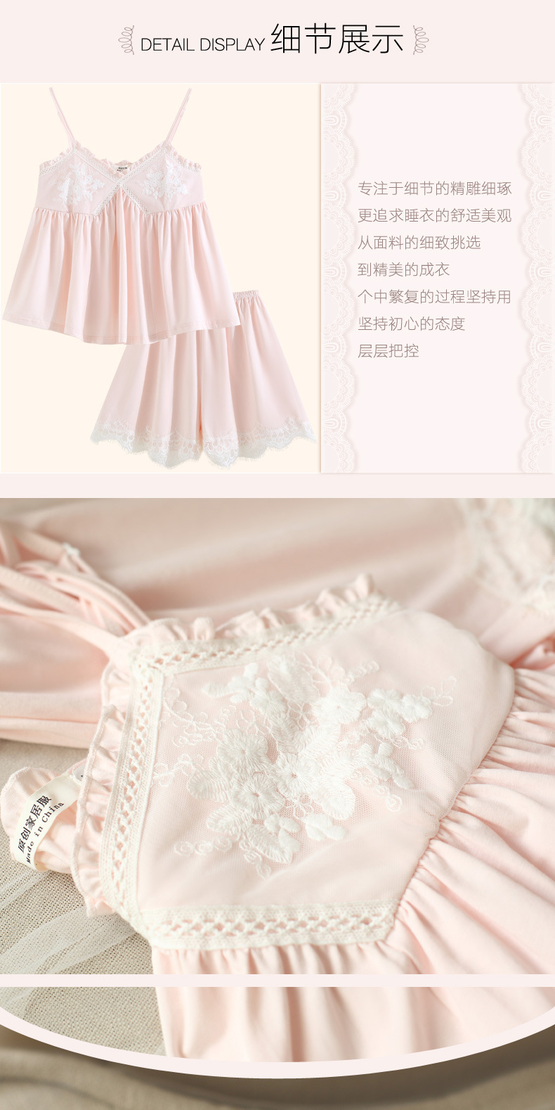 서스펜더 파자마 여성 여름 코튼 파자마 바지 투피스 세트 궁전 스타일 자수 프랑스 스타일 가슴 패드는 가정복 밖에서 착용 할 수 세트스토어 가기