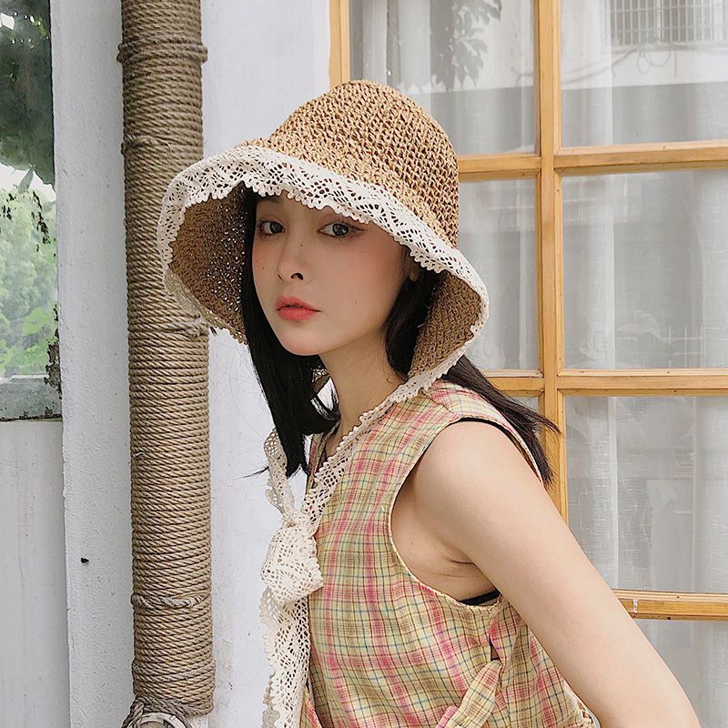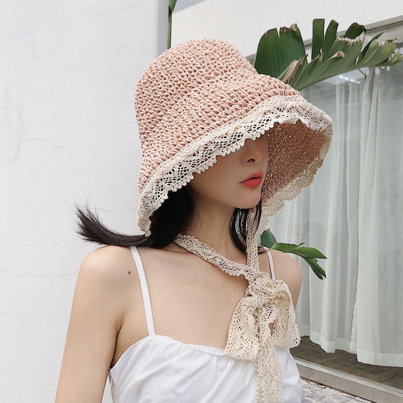 새로운 밀짚 모자 여성의 여름 접이식 해변 모자 휴일 태양 모자 활 큰 테두리 속이 빈 통기성 밀짚 모자 올 매치스토어 가기
