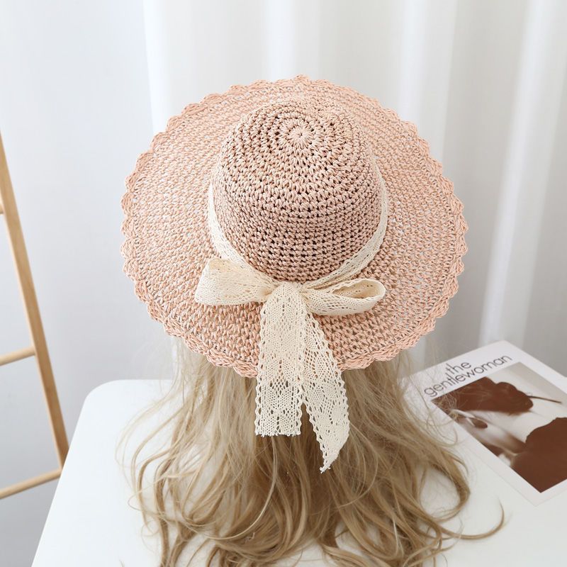 새로운 밀짚 모자 여성의 여름 접이식 해변 모자 휴일 태양 모자 활 큰 테두리 속이 빈 통기성 밀짚 모자 올 매치