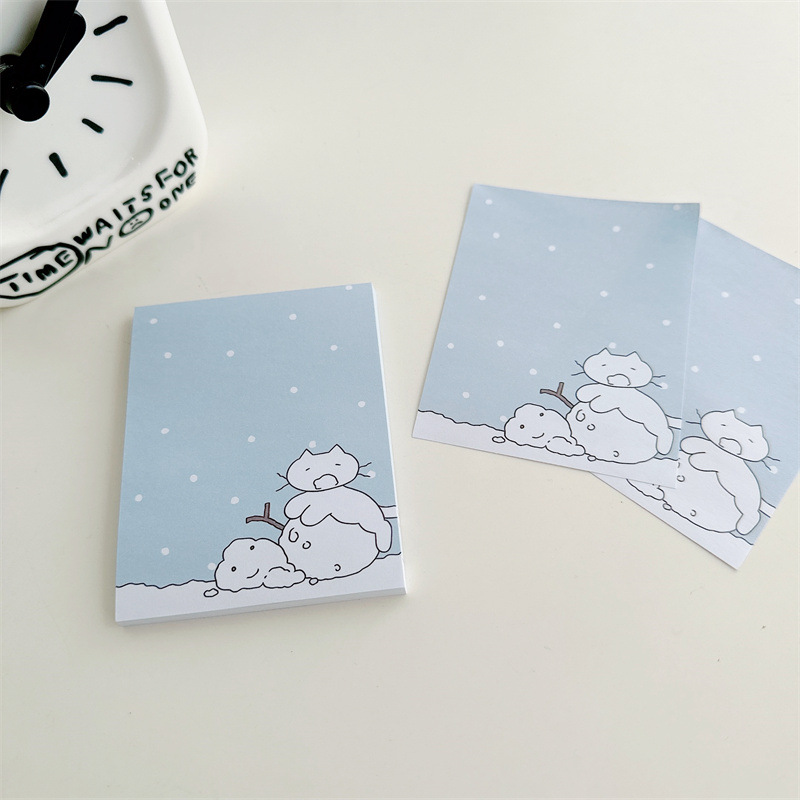 • 라이트 블루 눈사람 고양이 메모 패드
