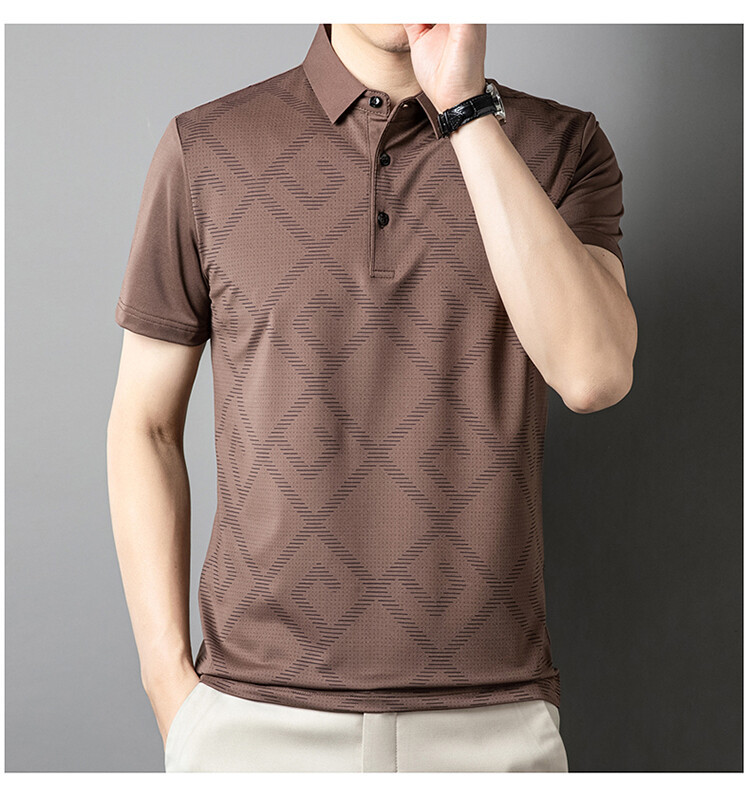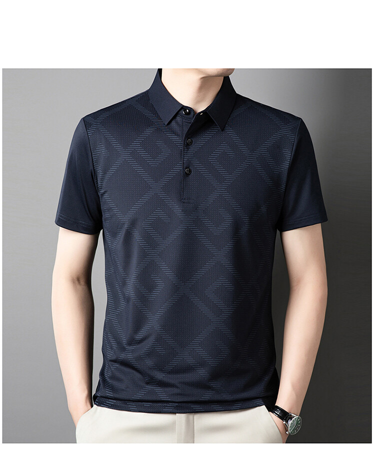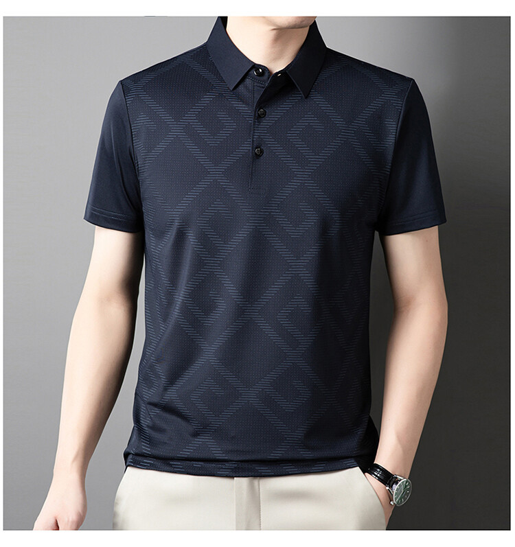 젊고 중년의 뉴 자카드 남성용 반팔 티셔츠 실키 여름 비즈니스 캐주얼 빠른 건조 옷깃 폴로 셔츠 탑