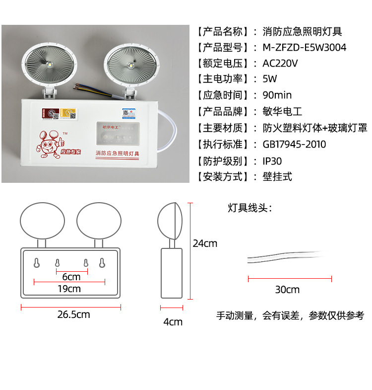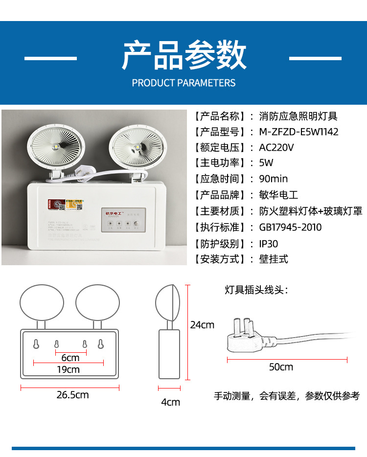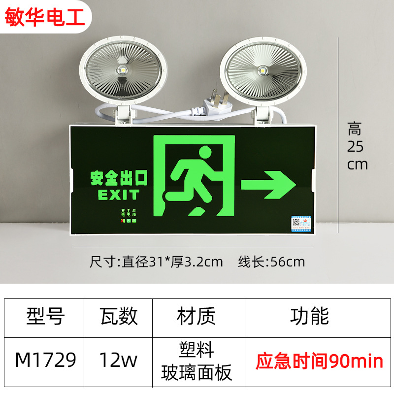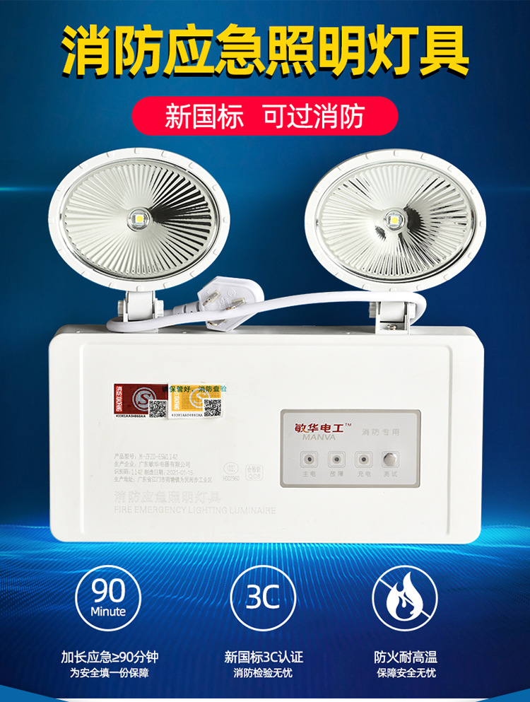 민화 화재 비상 조명 새로운 국가 표준 주도 양두 비상 조명 안전 출구 대피 정전 충전 유형