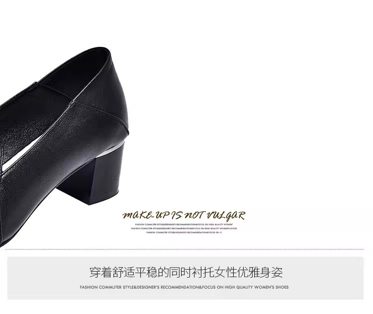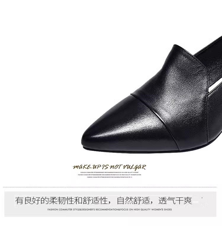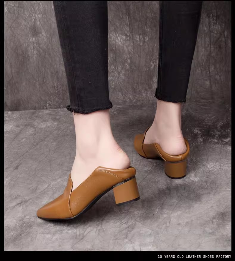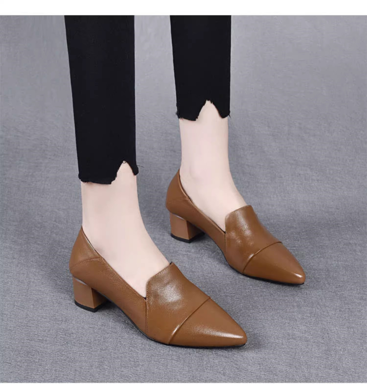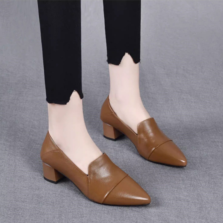 여성을위한 편안한 부드러운 가죽 미드 힐 싱글 레이어 신발 새로운 청키 힐 뾰족한 슬립 온 여성 신발 봄과 가을 2024 여성의 작은 가죽 신발스토어 가기