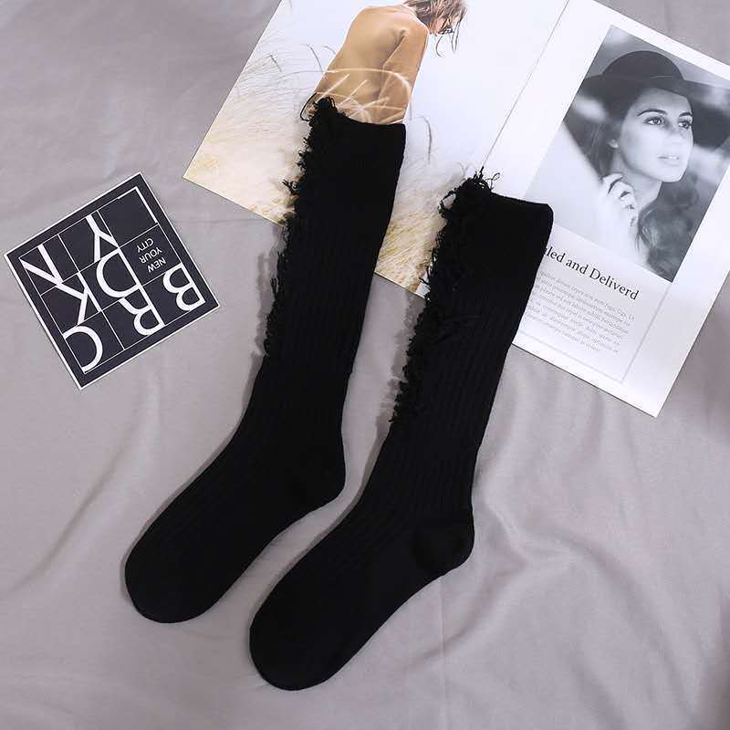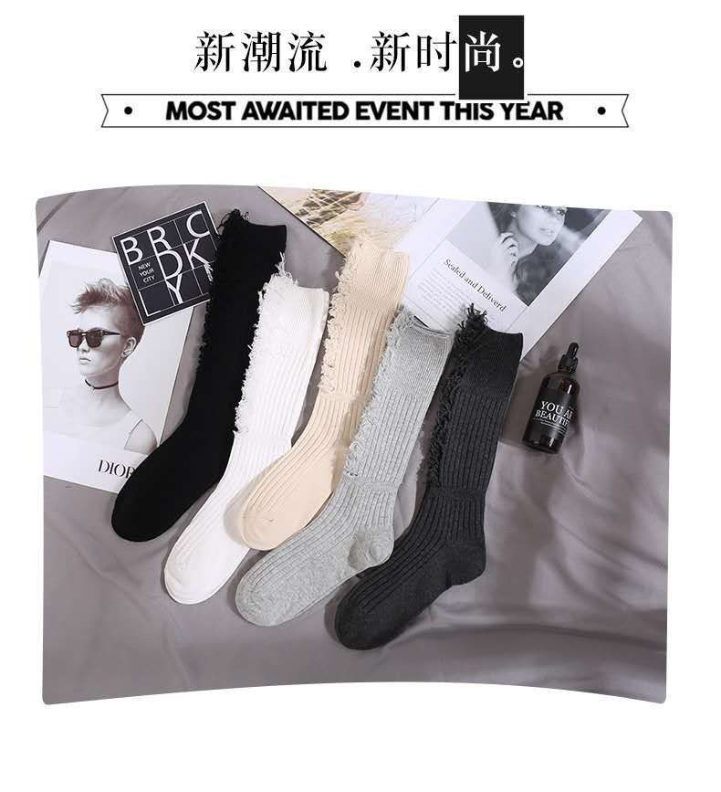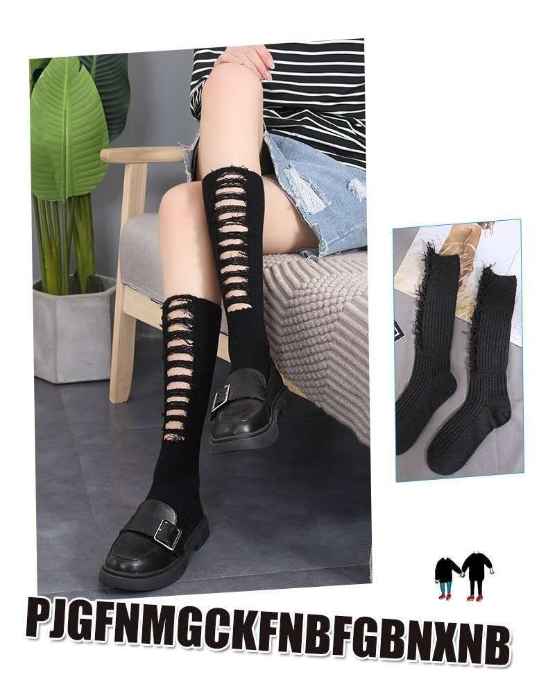 양말 여성 온라인 레드 패션 거지 찢은면 양말 패션 긴 수제 컷 파일 양말 니트