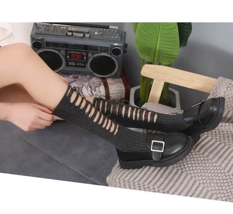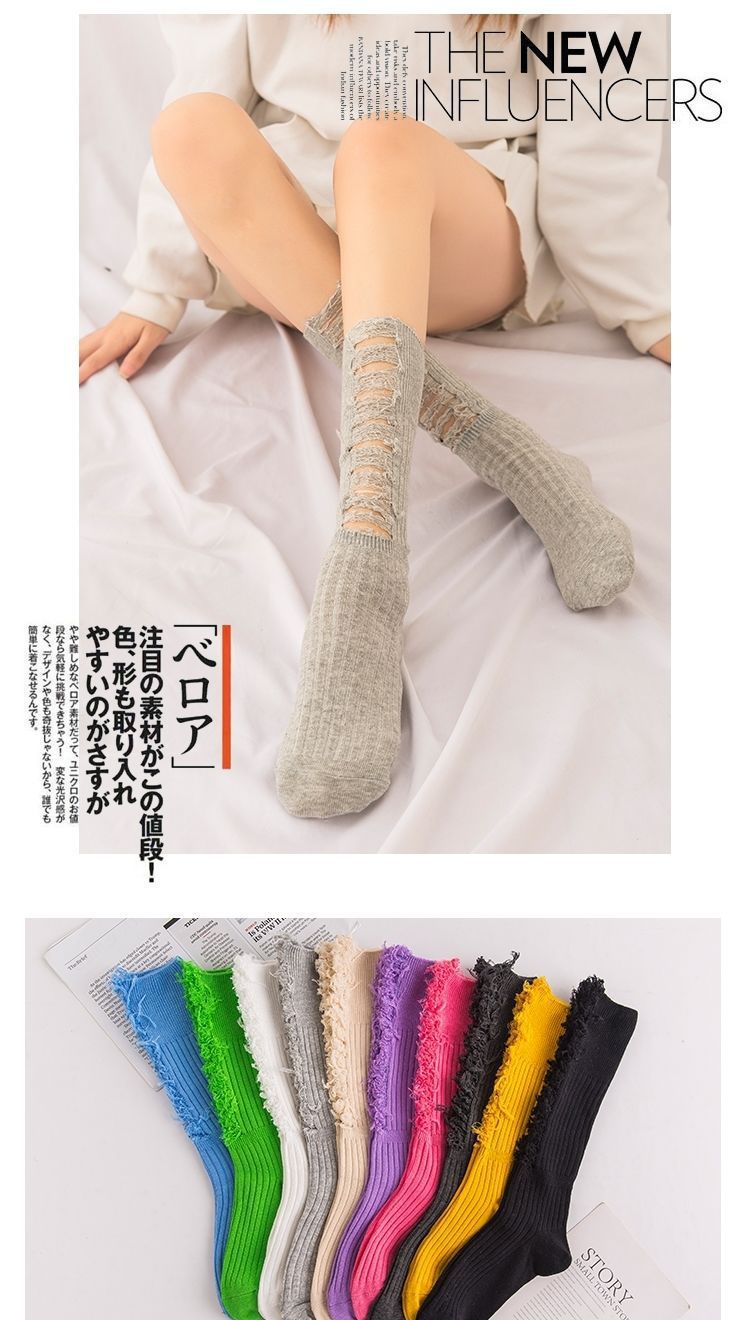 양말 여성 온라인 레드 패션 거지 찢은면 양말 패션 긴 수제 컷 파일 양말 니트스토어 가기