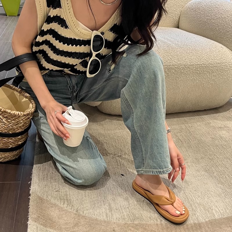 여성용 여름용 캐주얼 플랫 슬리퍼 2026년 신상 한국판 요정풍 해변 비치 슬리퍼스토어 가기