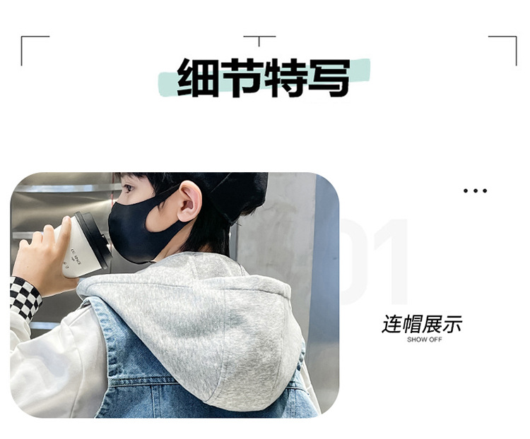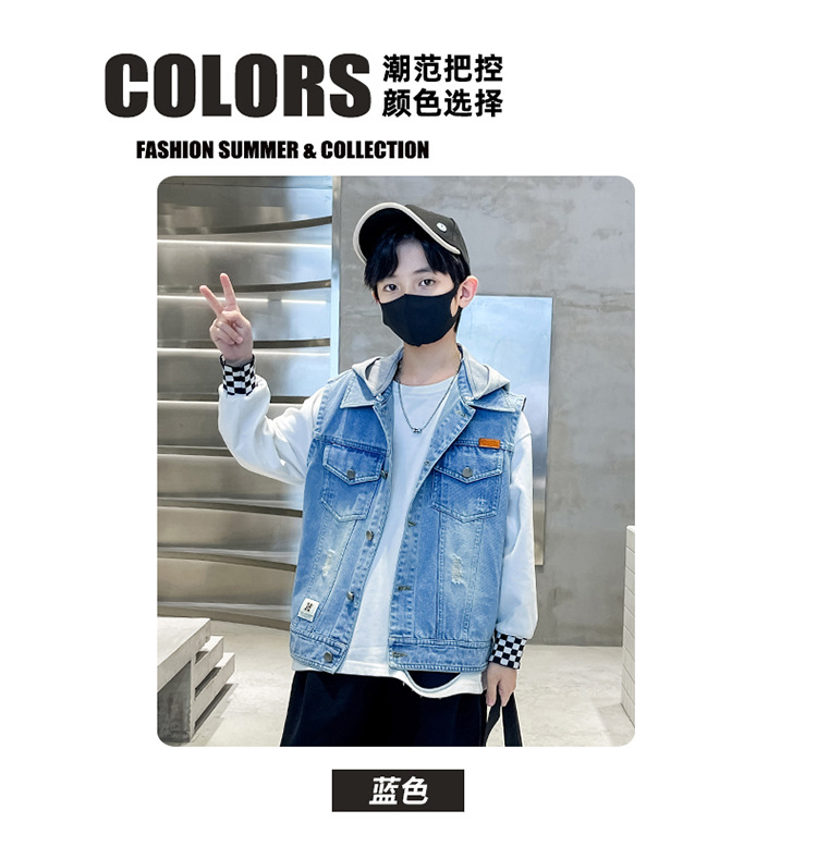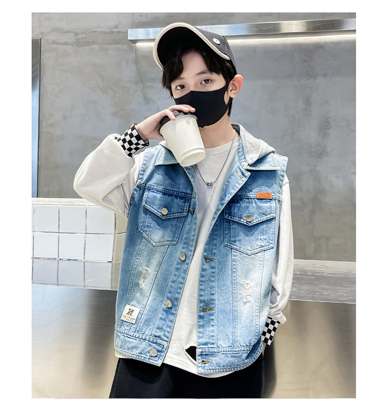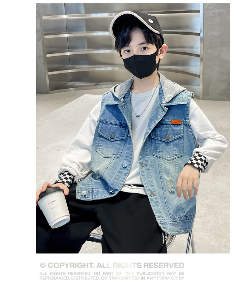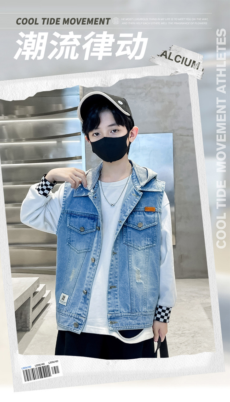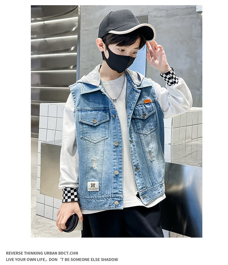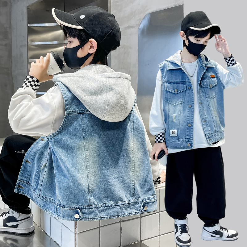남아 가을 데님 조끼 재킷, 중대형 아동용 2026 탈부착 후드 패션 데님 조끼 상의스토어 가기