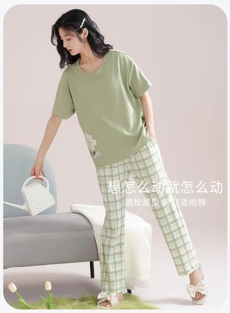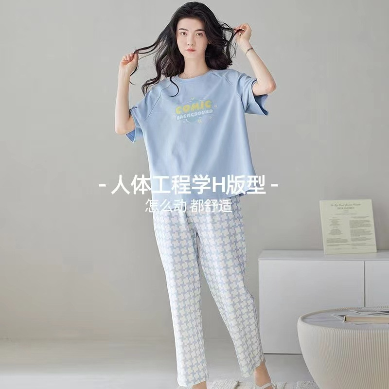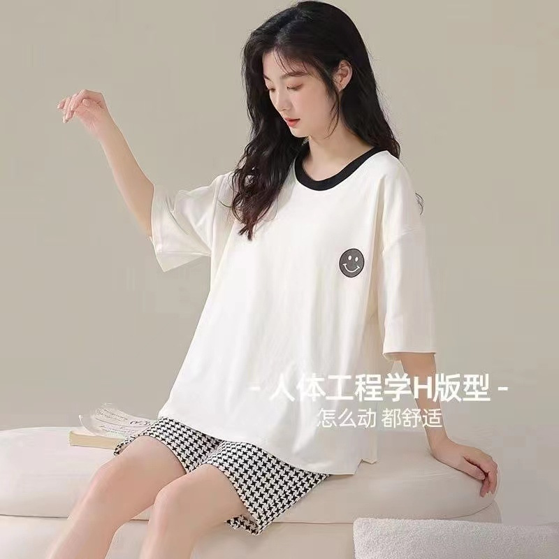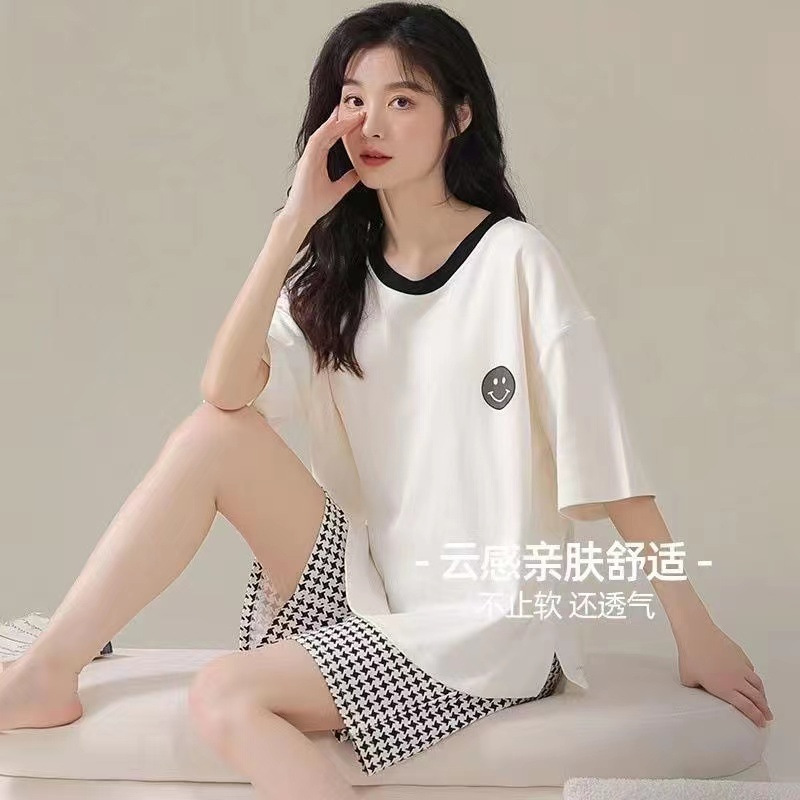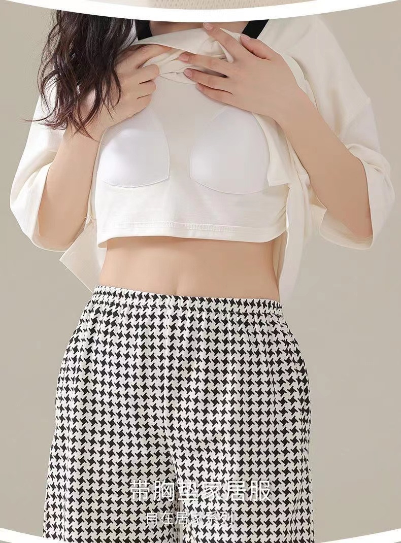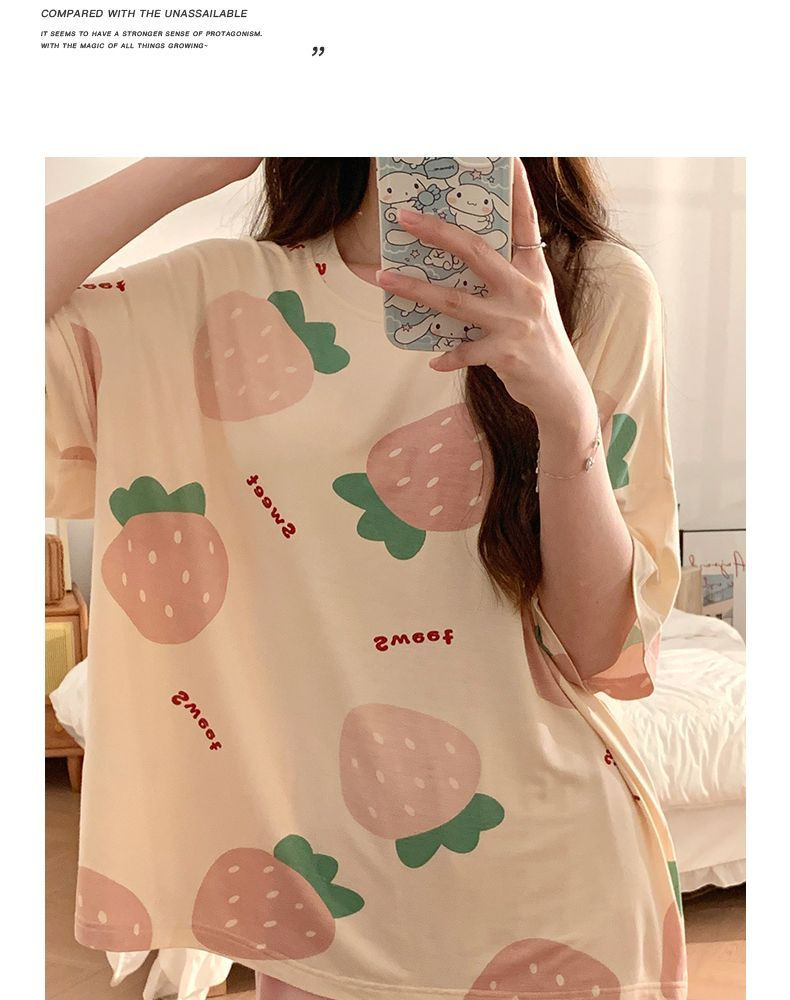 가슴 패드가 달린 3 피스 잠옷 여성 캐주얼 반팔 바지 달콤한 느슨한 플러스 사이즈 간단한 홈웨어 반바지스토어 가기