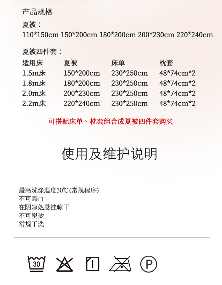 • 1.5m 침대 여름이불 4종세트 [여름이불 180*200장 230*250베갯잇 48*74*2]