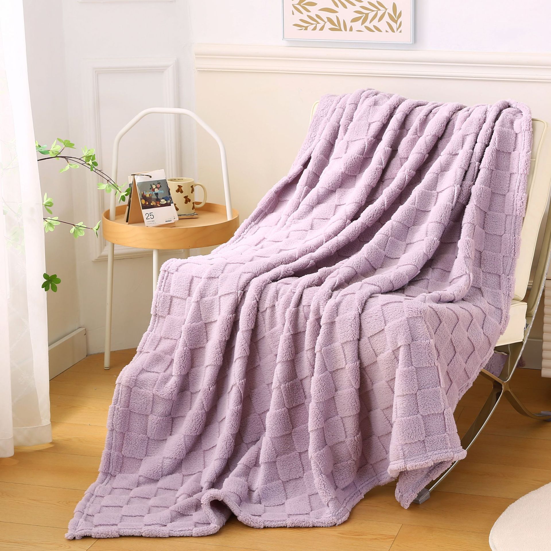 새로운 두꺼운 격자 무늬 타푸 벨벳 담요 단층 양면 Huafu 벨벳 사무실 다기능 에어컨 소파 담요