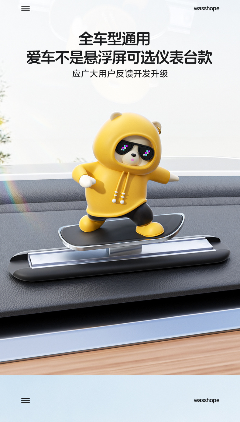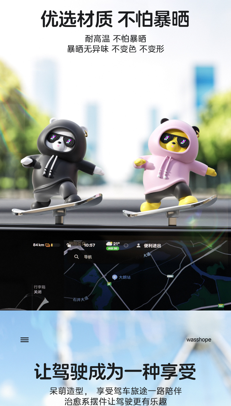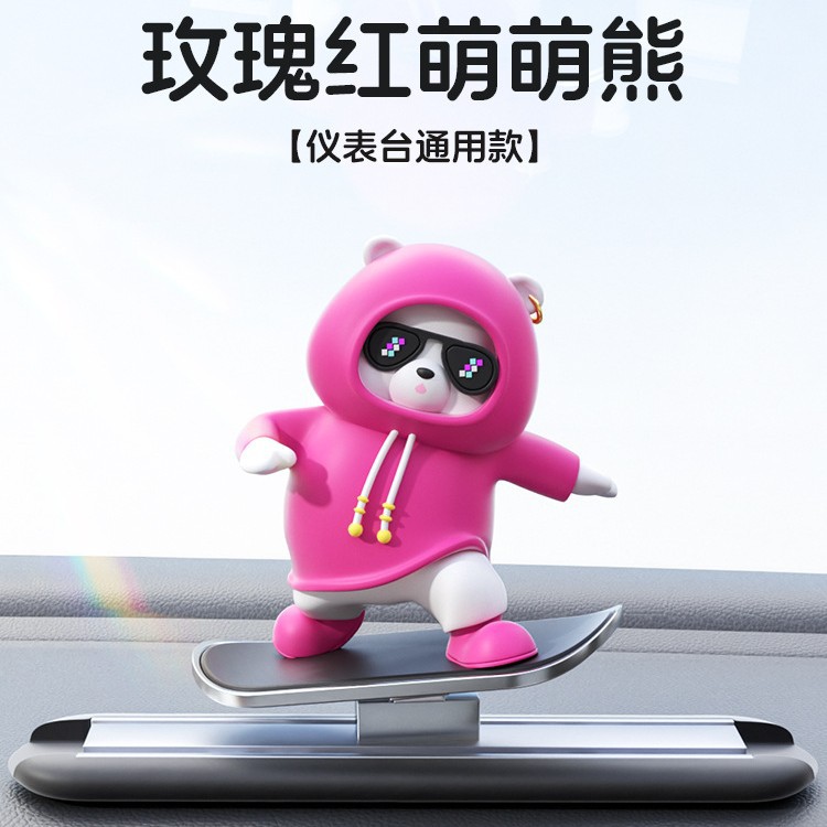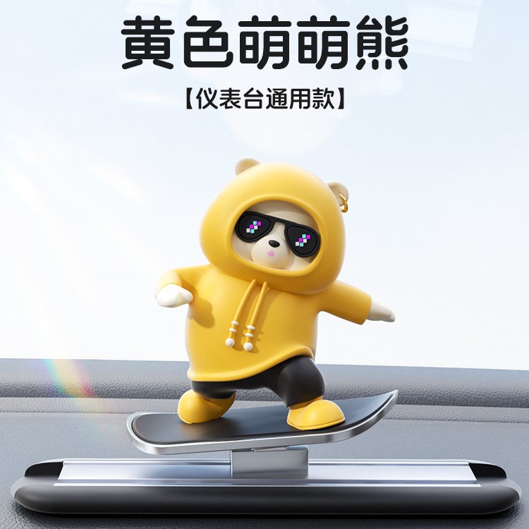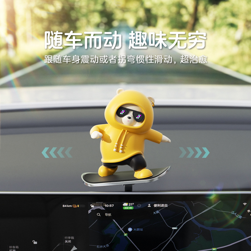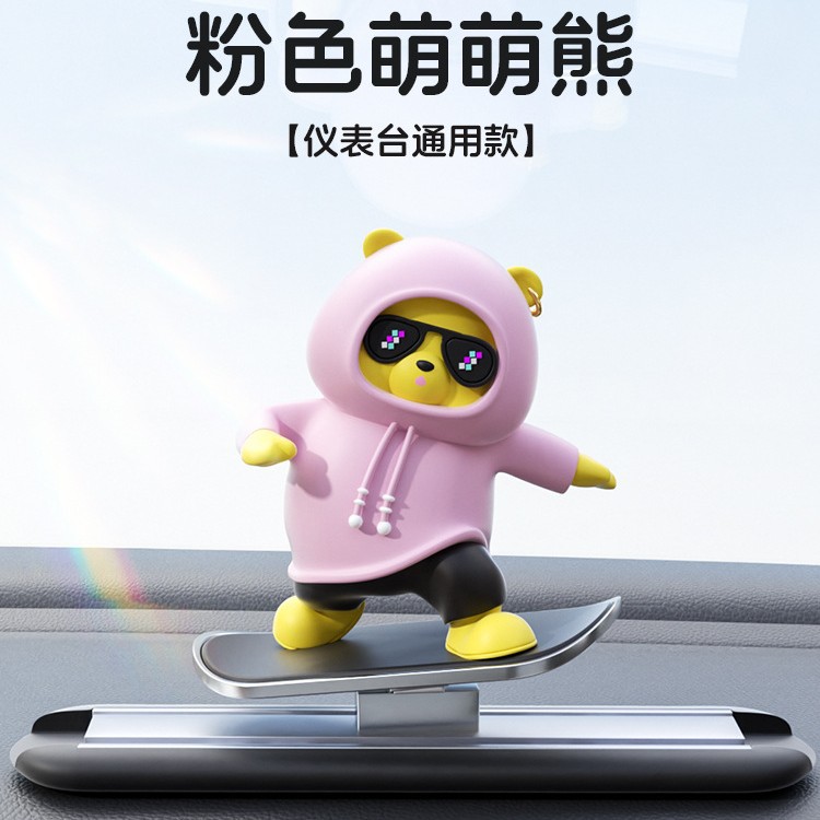 汽车滑板熊滑动摆件车载卡通动动熊中控屏幕仪表台小熊新款车摆件