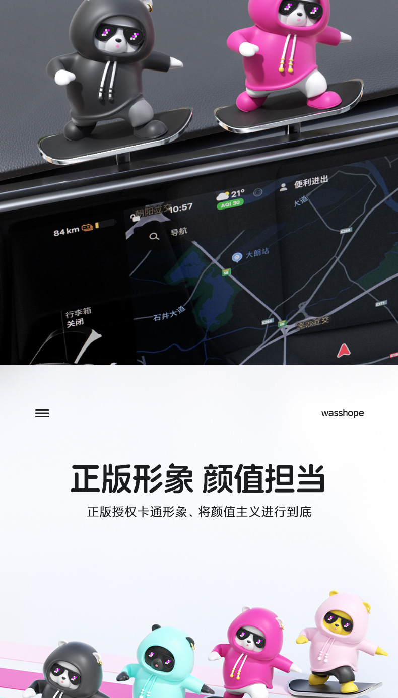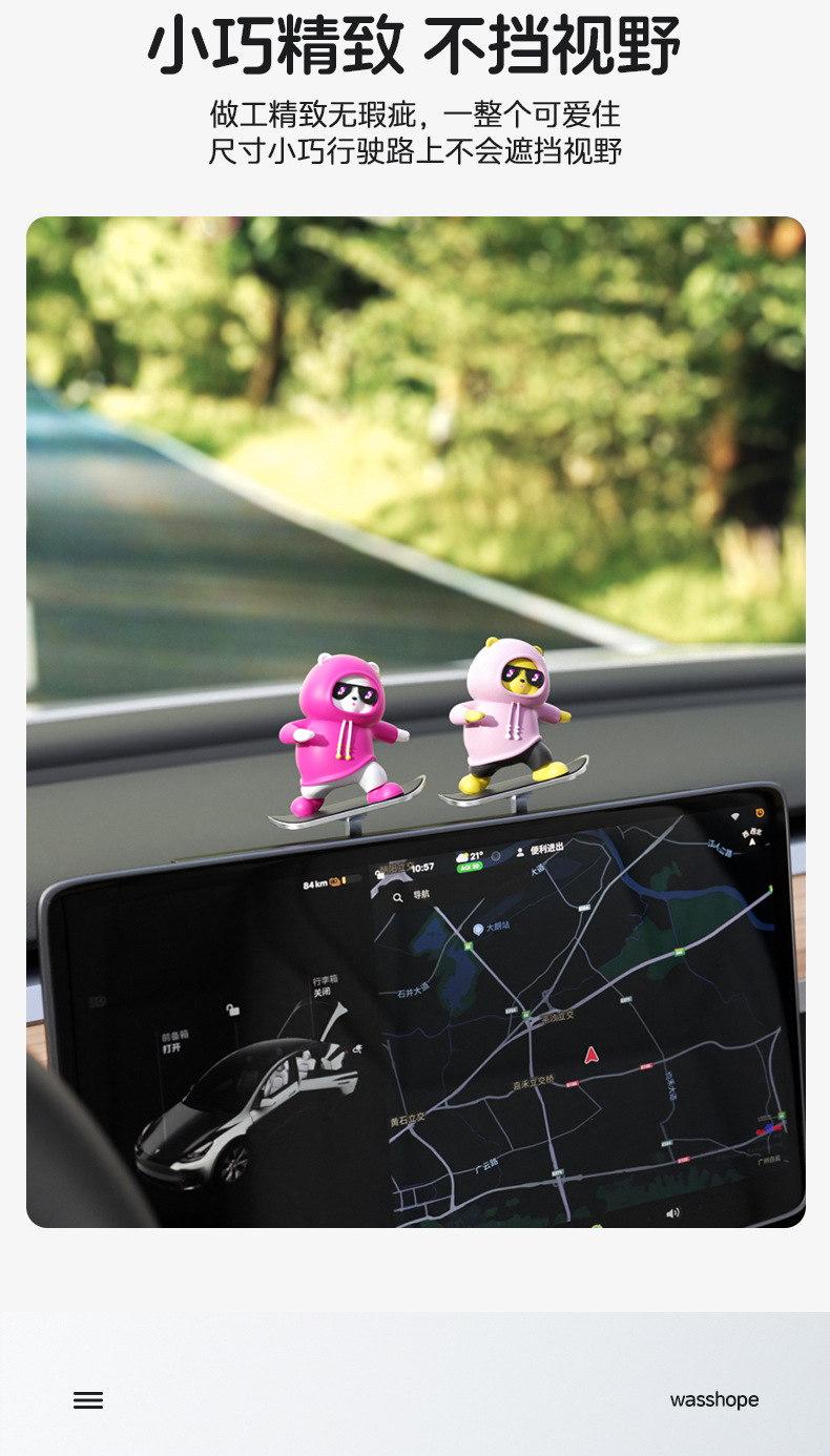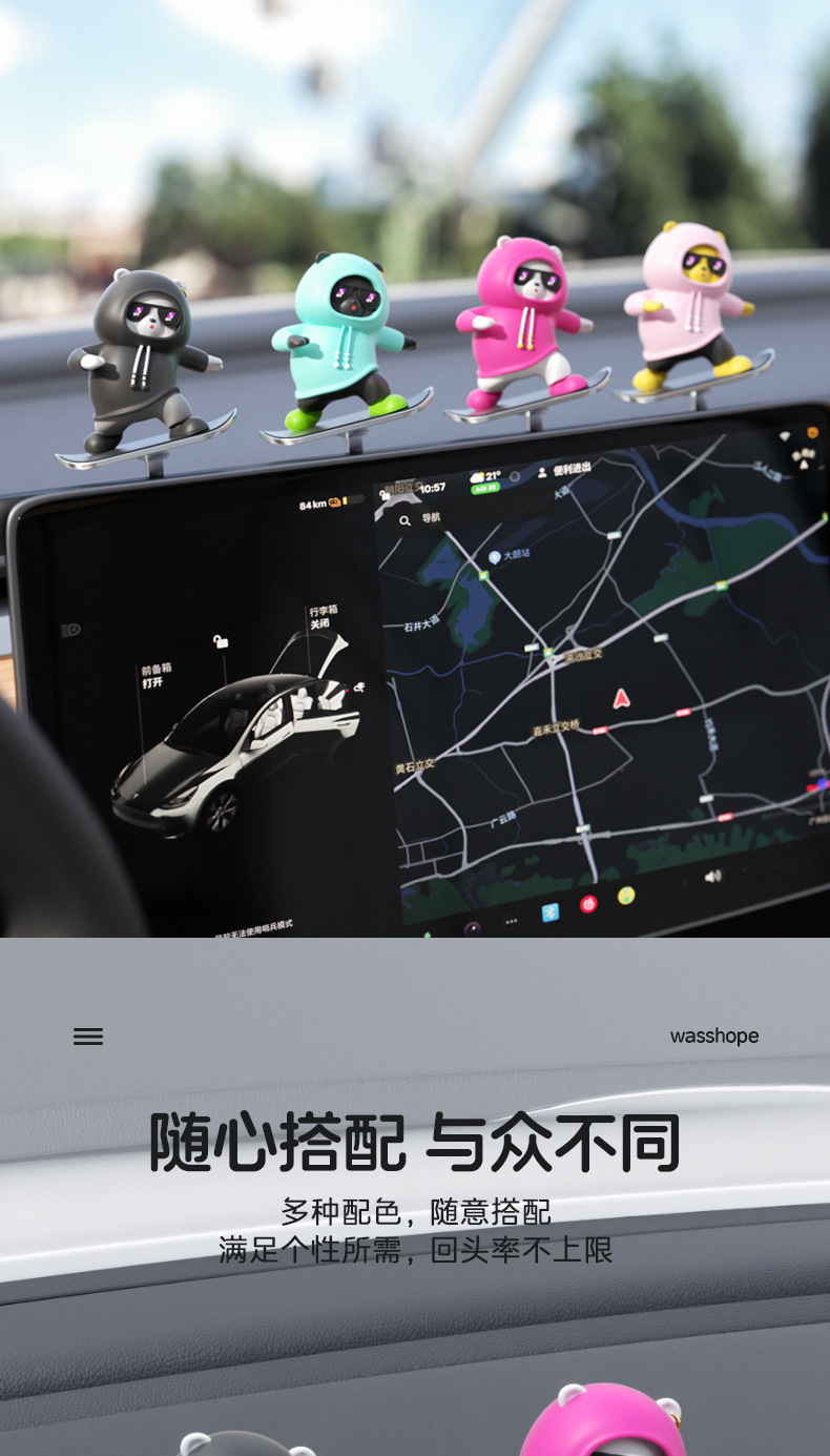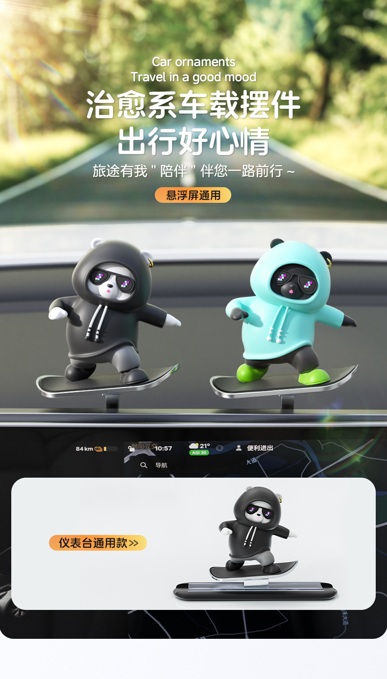 汽车滑板熊滑动摆件车载卡通动动熊中控屏幕仪表台小熊新款车摆件