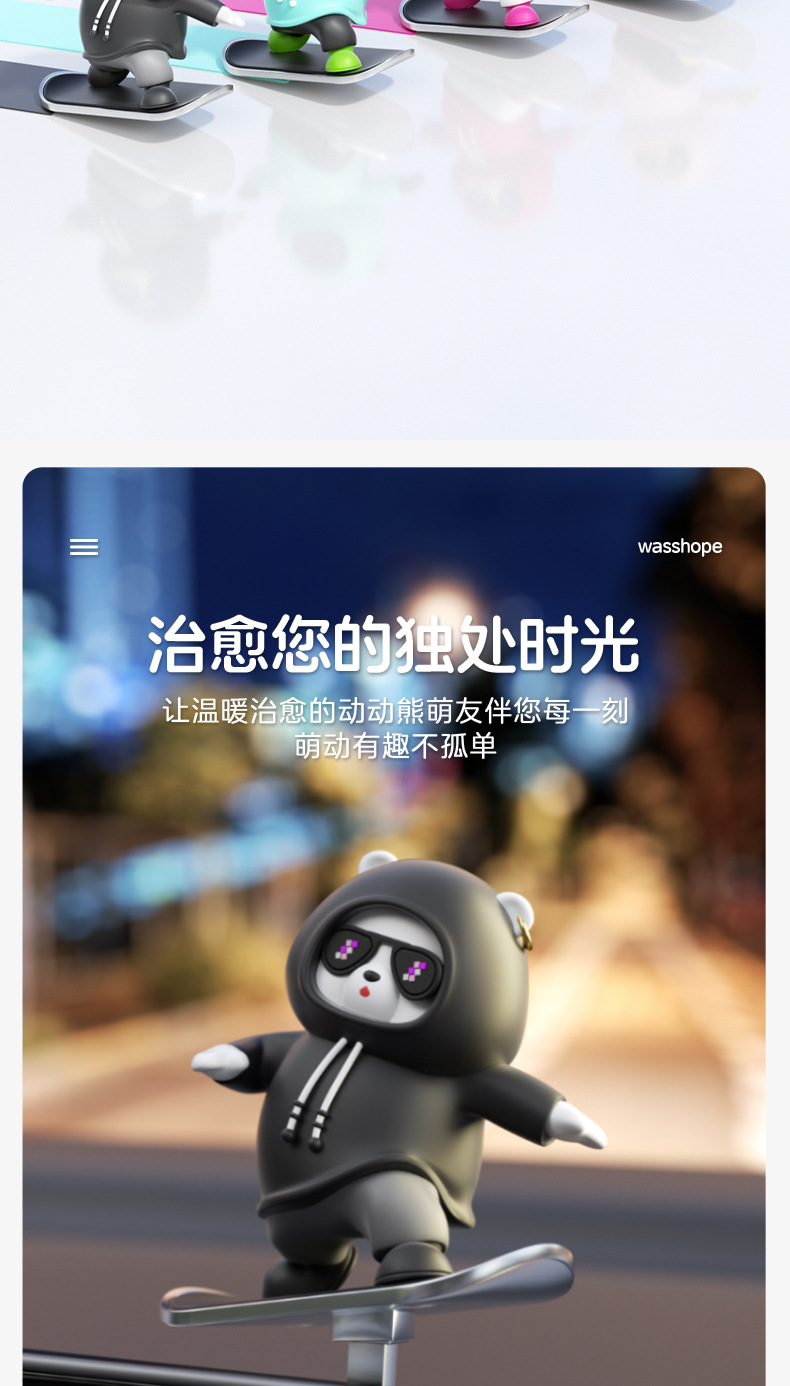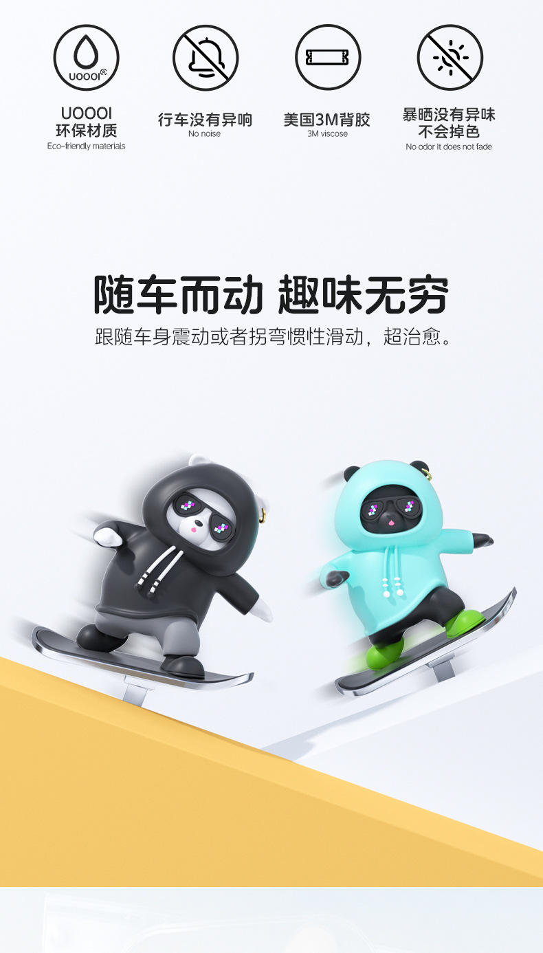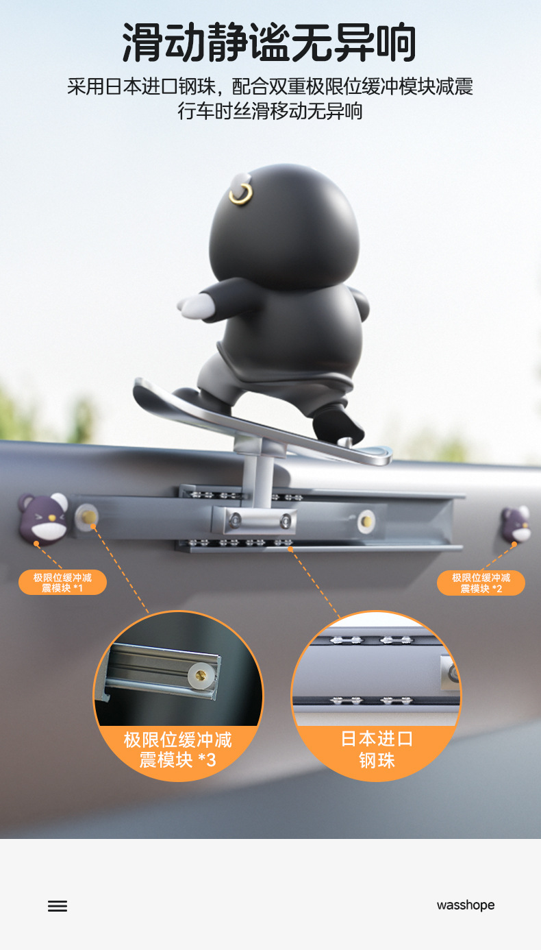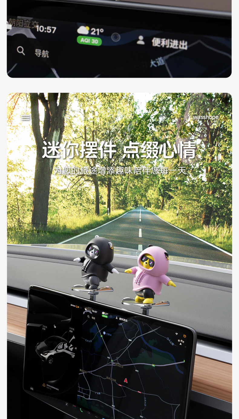 汽车滑板熊滑动摆件车载卡通动动熊中控屏幕仪表台小熊新款车摆件