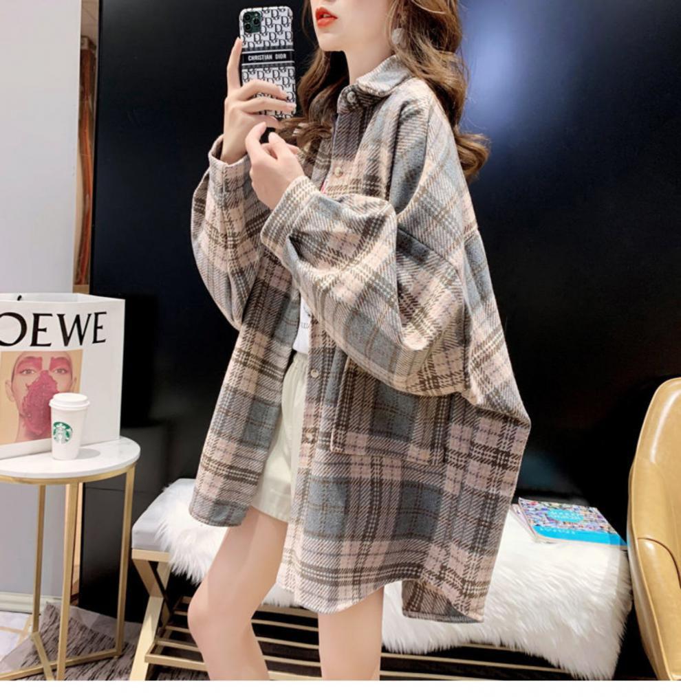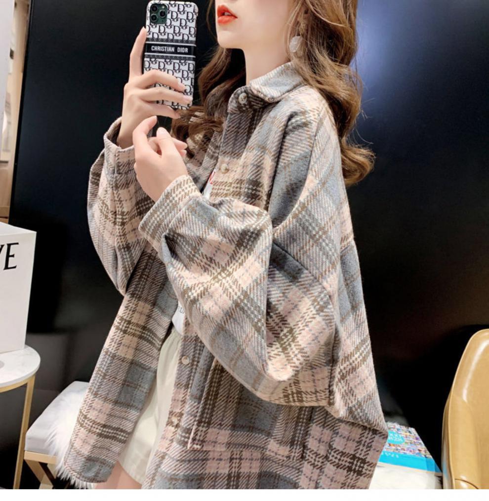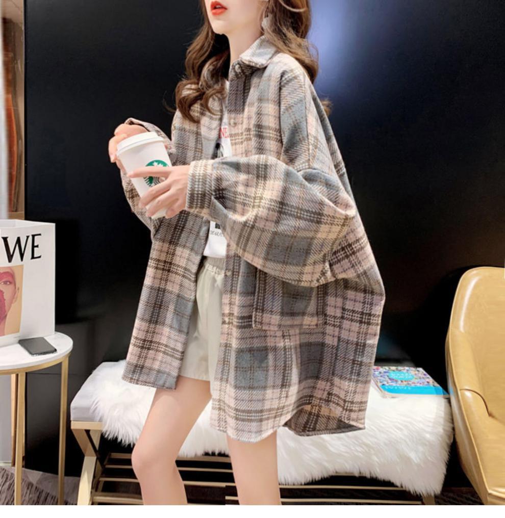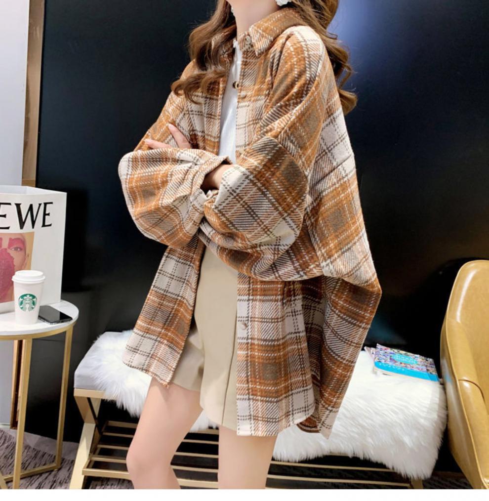 새로운 느슨한 올 매치 긴 소매 셔츠 가을과 겨울 캐주얼 코트 여성을위한 두꺼운 2024 체크 무늬 셔츠스토어 가기