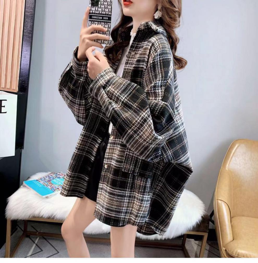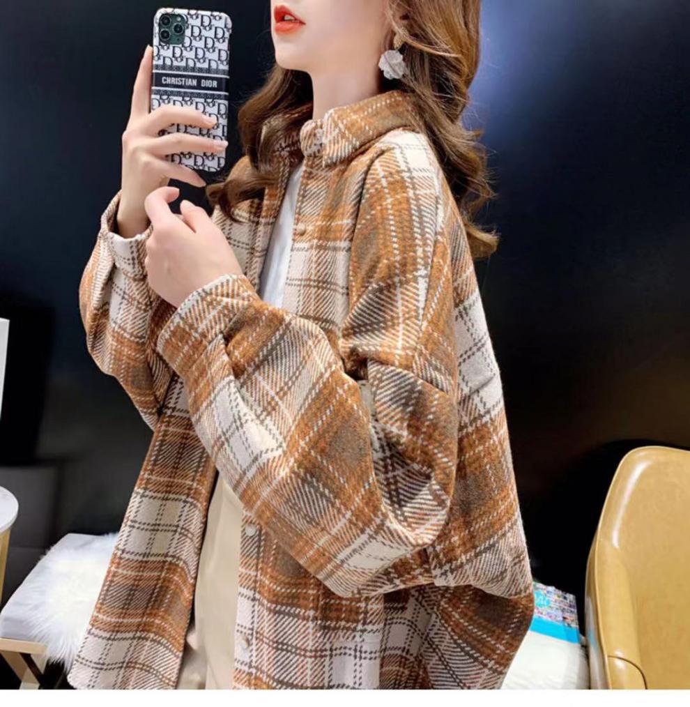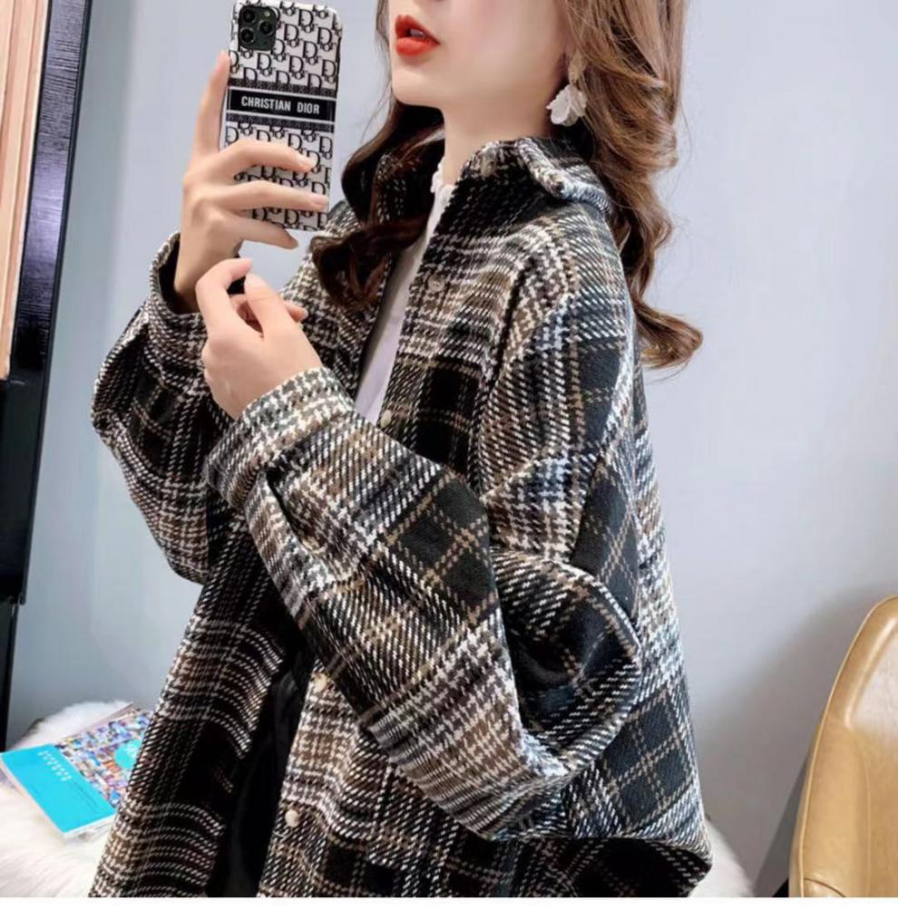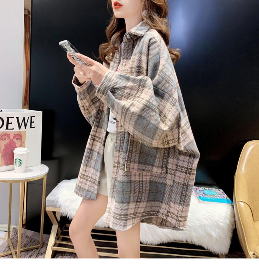 새로운 느슨한 올 매치 긴 소매 셔츠 가을과 겨울 캐주얼 코트 여성을위한 두꺼운 2024 체크 무늬 셔츠스토어 가기