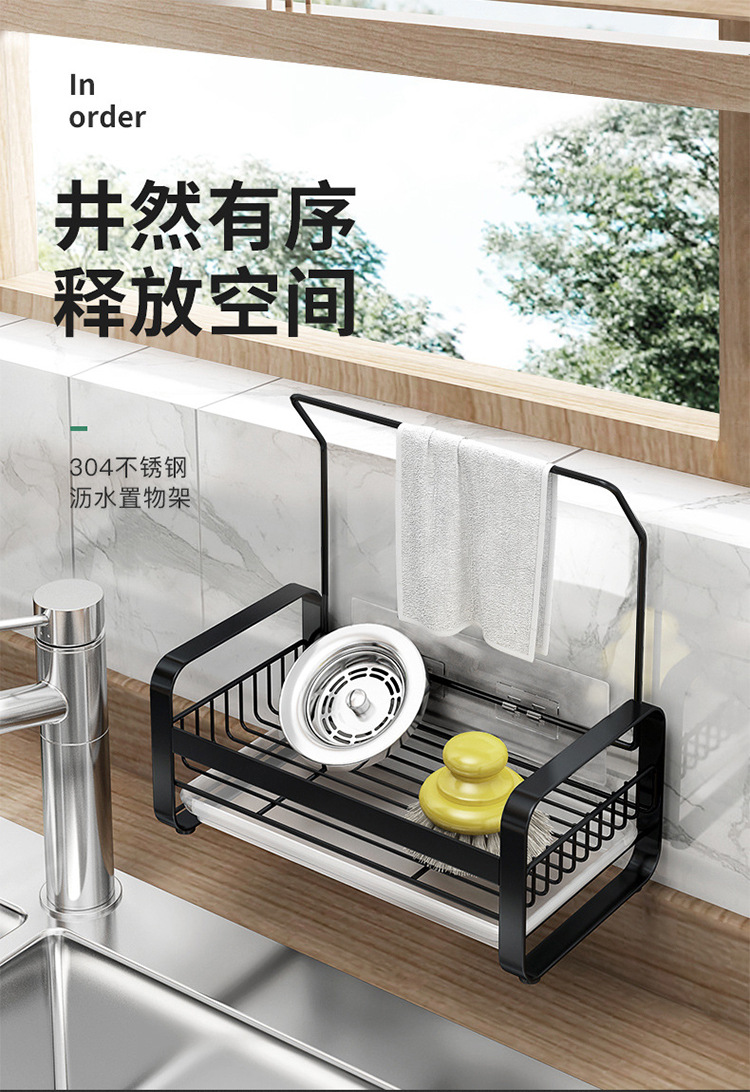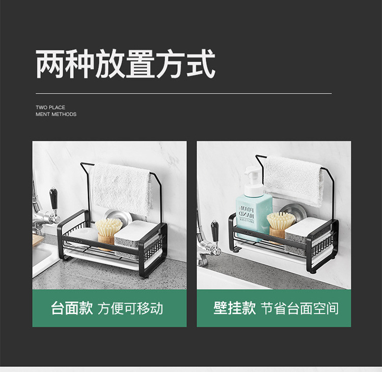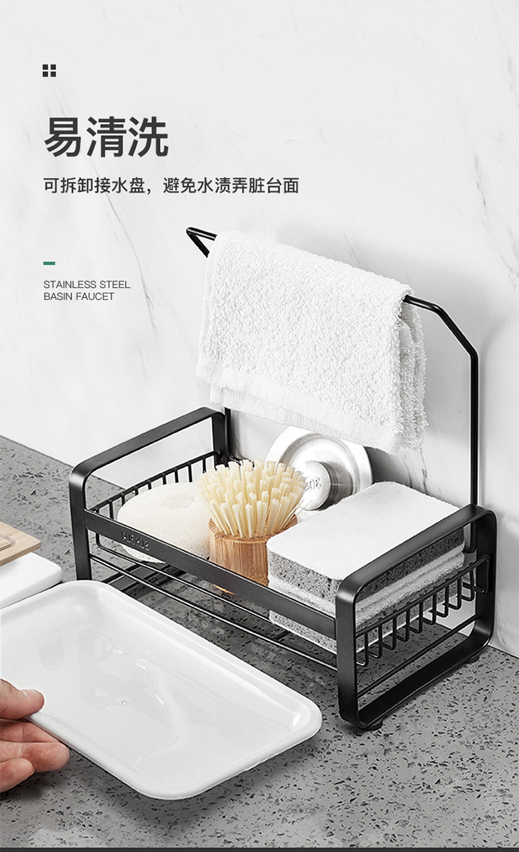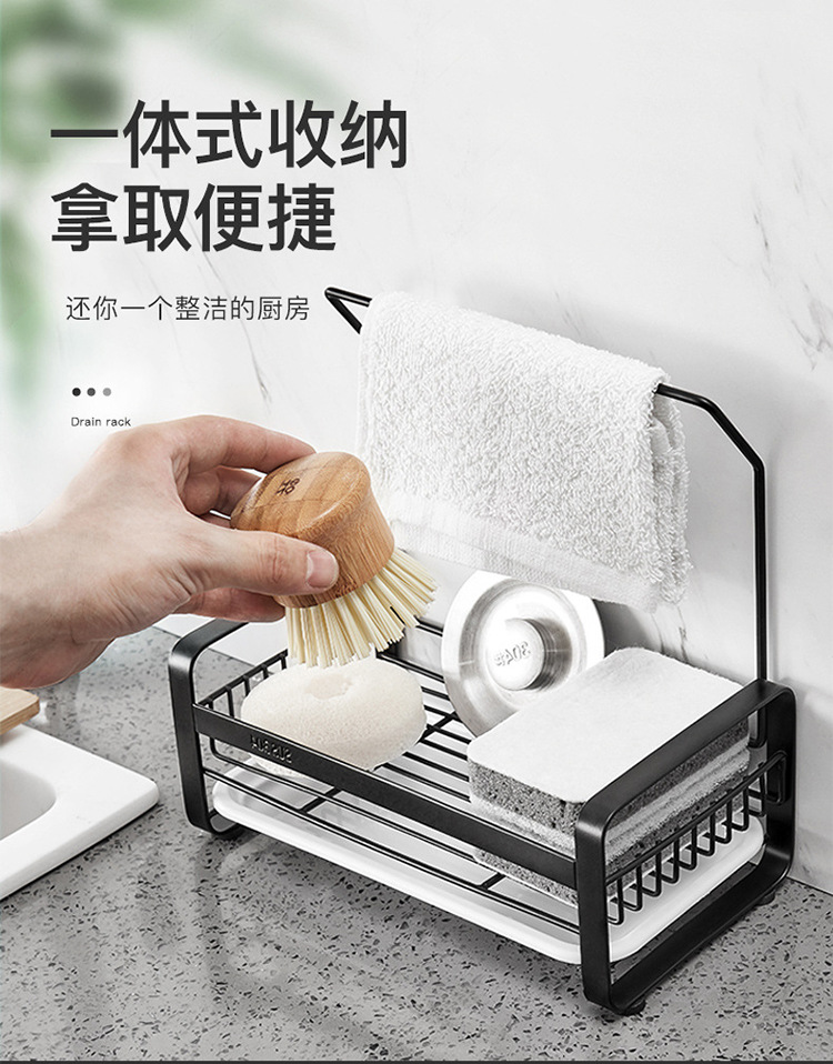 랙 랙 주방 배수 랙 펀치없는 카운터 탑 벽 장착 주방 용품 보관 선반 스폰지 수건 보관 랙