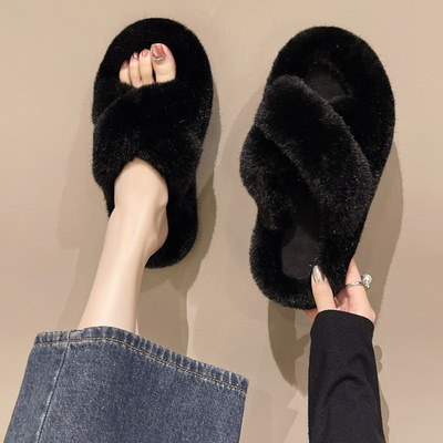 인터넷 인기 털 슬리퍼 여성용 외출용 신상 가을 겨울 패션 두꺼운 밑창 플러스 벨벳 산후 신발 키높이 면 슬리퍼