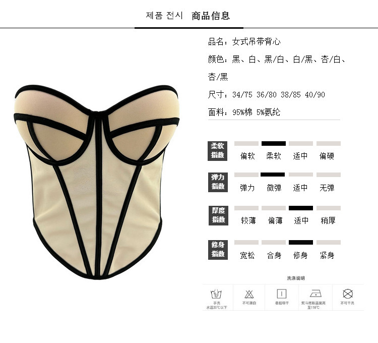 유럽과 미국 스타일의 뜨거운 판매 새로운 메쉬 조끼 슬링 복고풍 슬림 통기성 기질 Fishbone 가슴 컵 최고