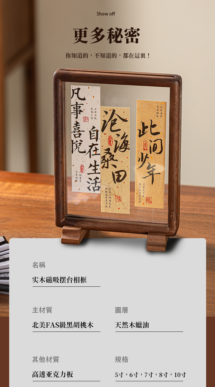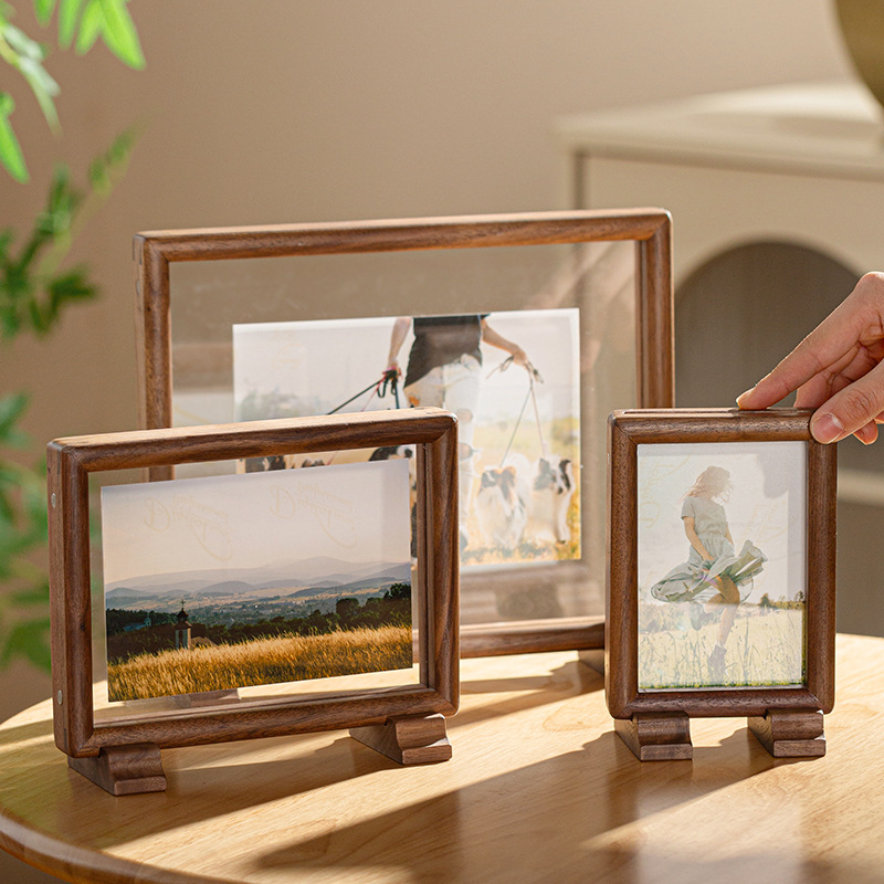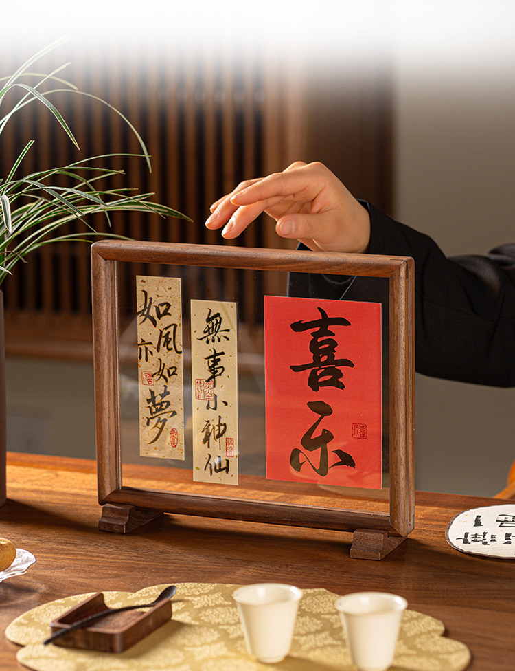 고급 단단한 나무 검은 호두 양면 투명 사진 프레임 장식 중국 그림 A4A3 그림 프레임 장착 벽스토어 가기