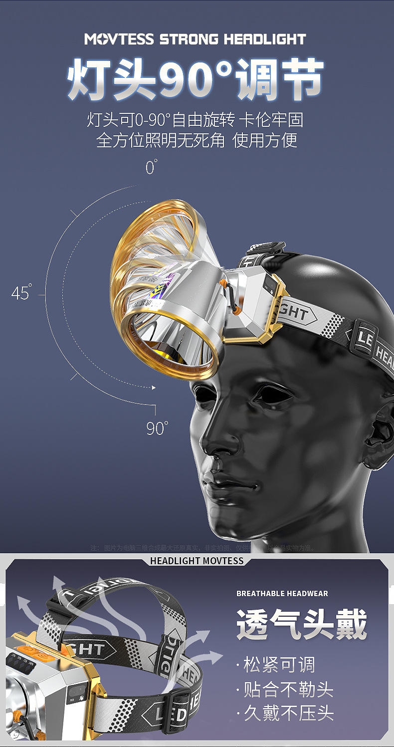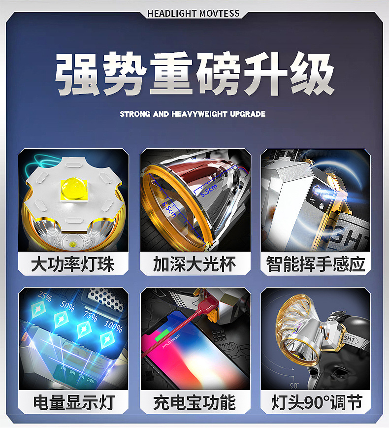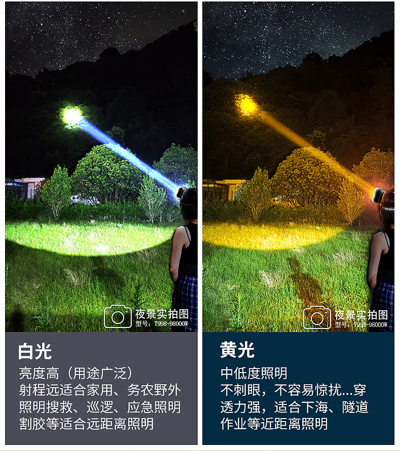 긴 내구성 헤드 램프 LED 헤드 램프 헤드 장착 강한 충전식 슈퍼 밝은 밤 낚시 야외 건설 현장 밝은 먼 광산