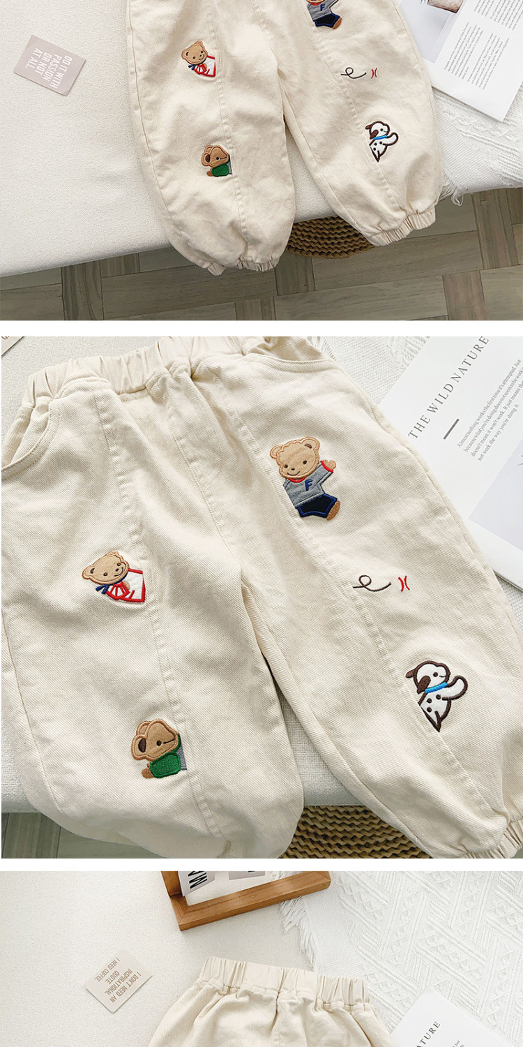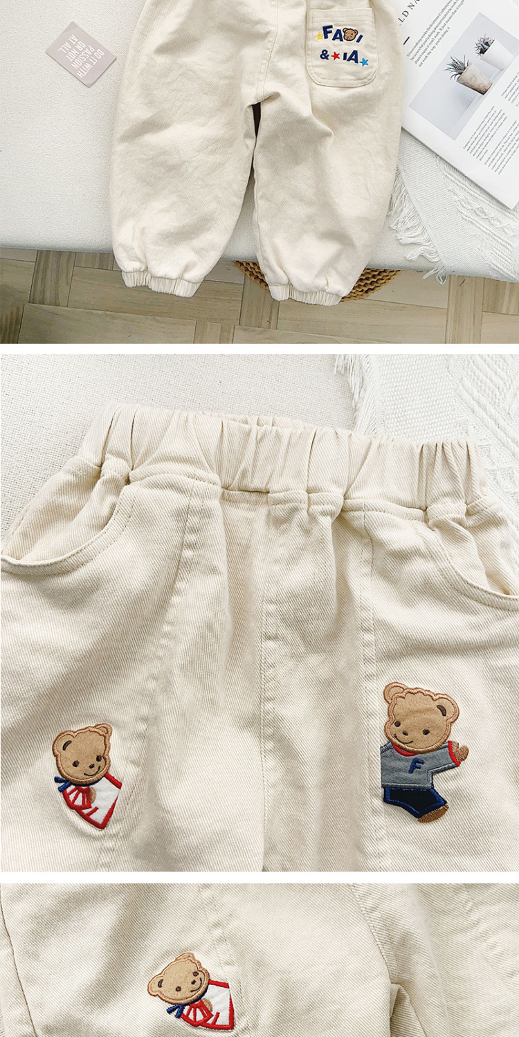 새로운 만화 귀여운 아동복 소년 바지 봄 새로운 흥미로운 자수 닫힌 캐주얼 바지 어린이 짠 바지스토어 가기