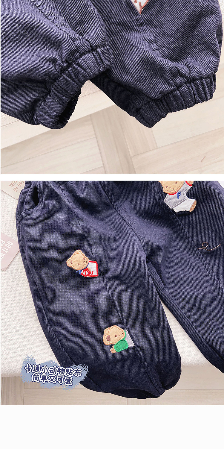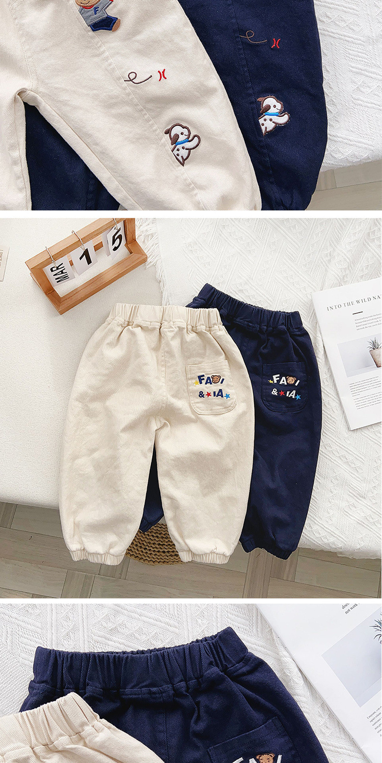 새로운 만화 귀여운 아동복 소년 바지 봄 새로운 흥미로운 자수 닫힌 캐주얼 바지 어린이 짠 바지