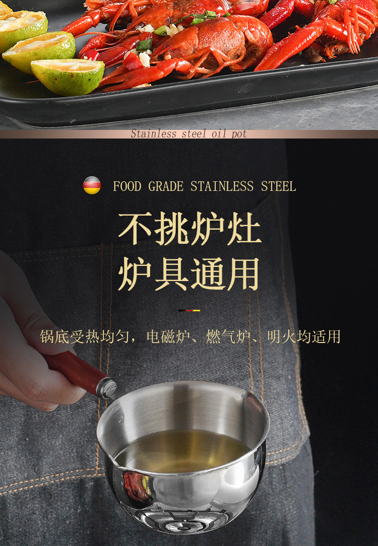 기름 붓는 냄비 304 스테인레스 스틸 고온 방지 구운 커피 냄비 상업용 미니 스테이크 후추 소스 뜨거운 붓는 기름