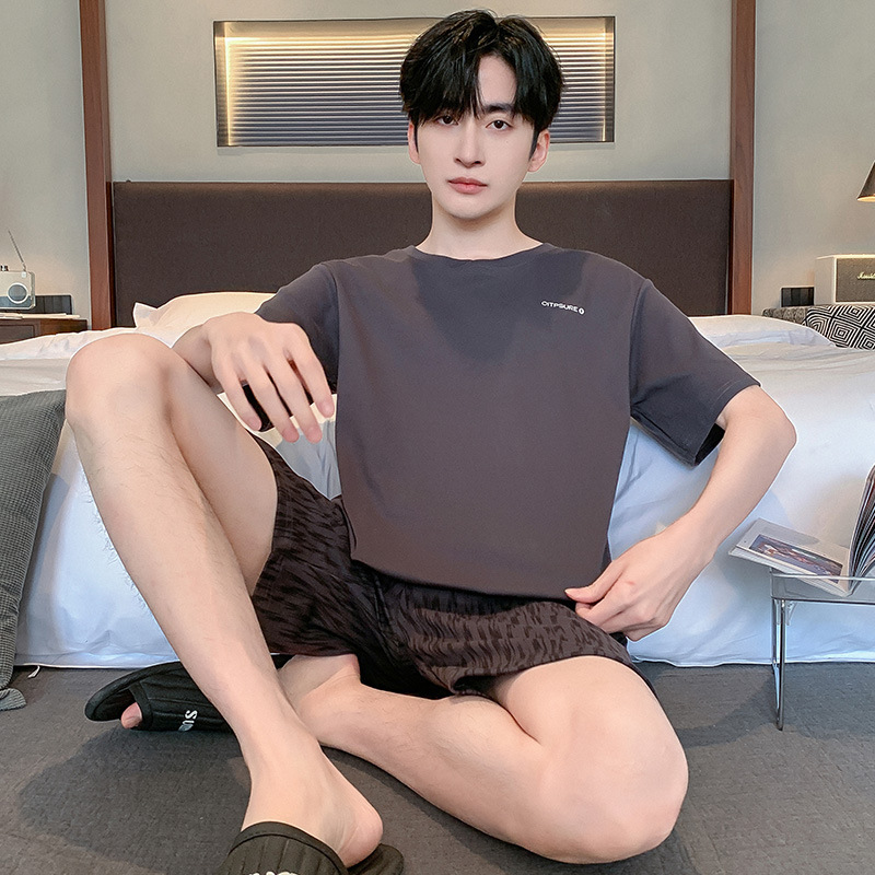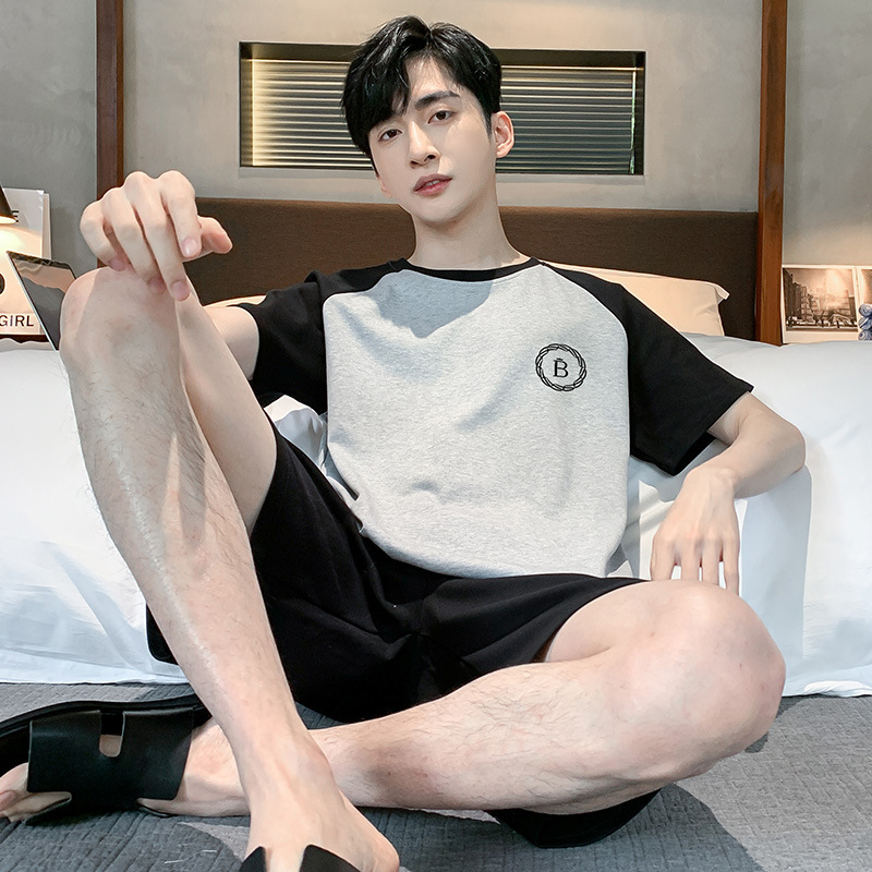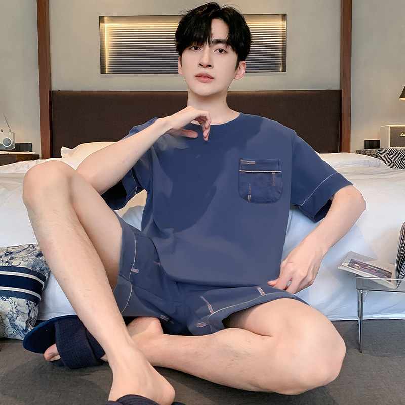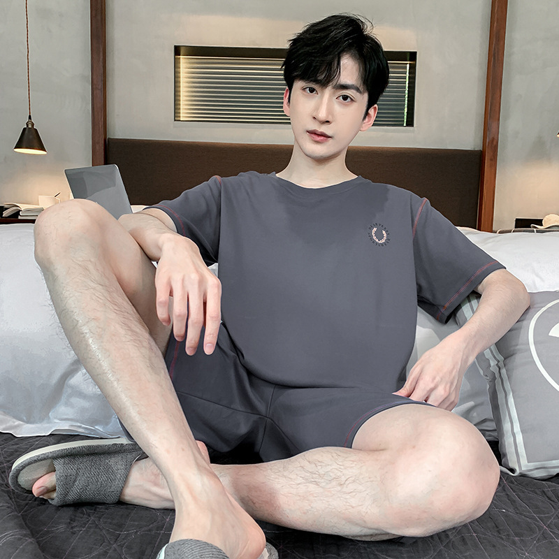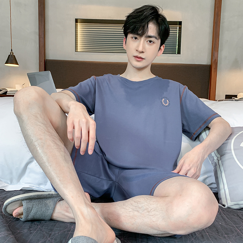 여름 남성 잠옷 반바지 빗질 코튼 캐주얼 심플한 홈웨어 세트 얇은 느슨한 5XXXXXL스토어 가기